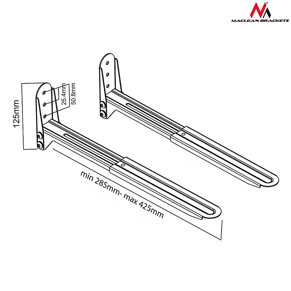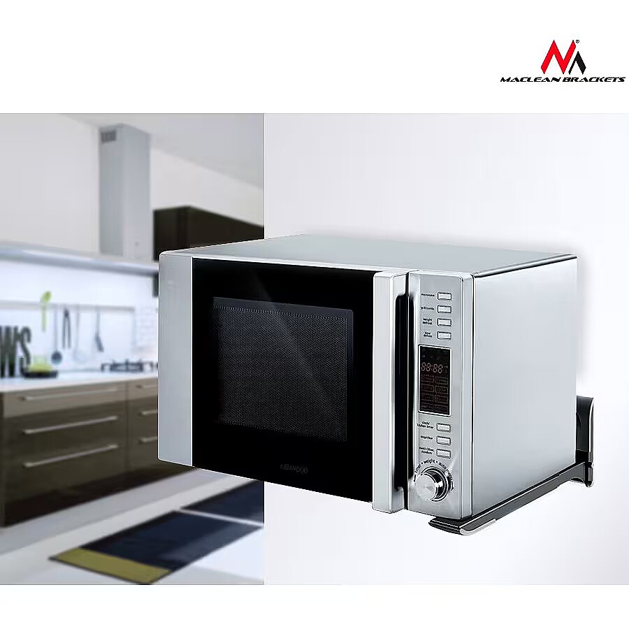 Description - Microwave handle MC-776 B black up to 20 kg The holder/shelf allows you to place a microwave oven, as well as AV equipment, eg SAT receiver, DVD, console, etc. The universal wall bracket allows you to mount devices with a weight of up to 20kg and almost any size on the wall, which saves space and makes it convenient to use. The handle is made of very durable materials which ensures its durability and reliability of use. Universal wall bracket for microwave ovens as well as AV equipment, eg SAT tuner, DVD, console, etc. The holder is very easy to assemble and use. Just screw to the wall with the screws included in the set, set the shoulder width and mount the device. The handle ensures stability of the device and easy access to it. The handle consists of two sturdy L-shaped arms with adjustable length, fastened to the wall using the screws provided.