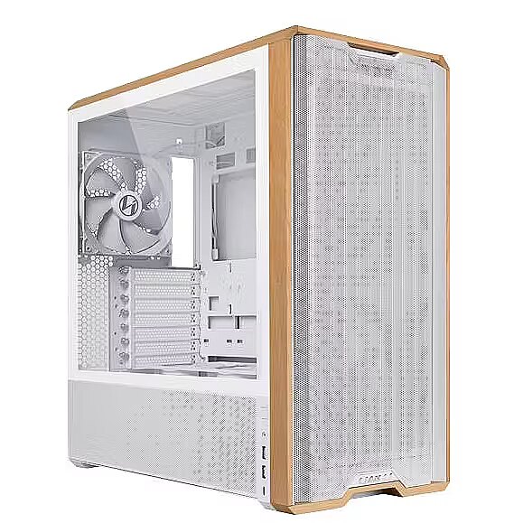 The LANCOOL 217 is a mid-tower case that combines innovative cooling design with real wood accents. It comes pre-installed with five fans, delivering optimized airflow right out of the box. A flexible PSU mounting design makes cable management easier. Available in Black with dark wood accents or White with light wood, it blends natural beauty with high-performance capability. AVAILABLE IN TWO COLORS