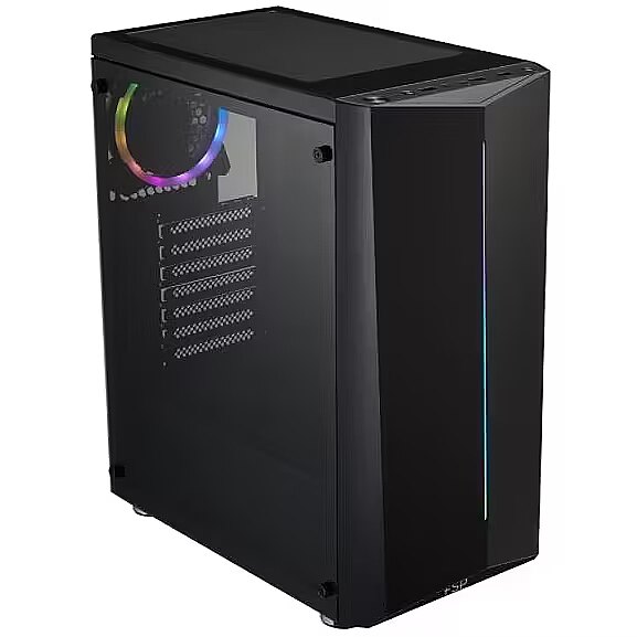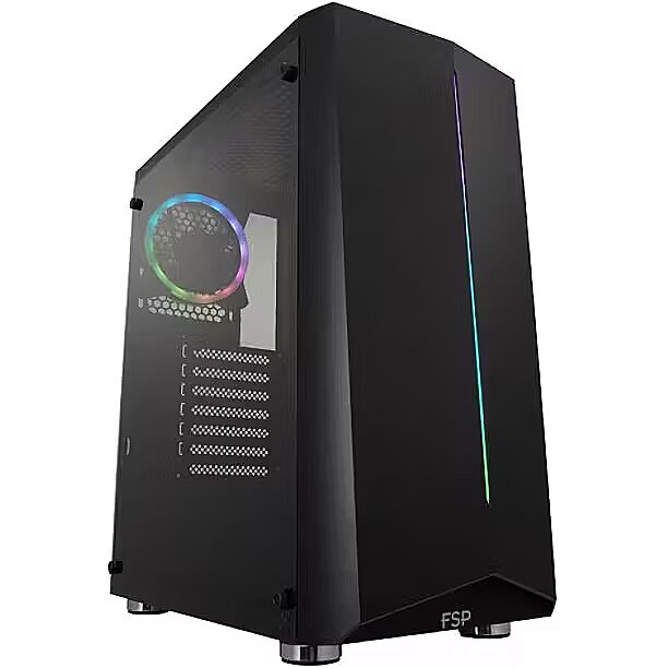 LongDesc - Sleek, clean look and Acrylic side panelElegant designed ATX mid-tower PC case that wins over it’s crystal clear design. Combined with plenty of space it becomes the perfect match for gamers and all kinds of hardware-enthusiasts.Apart from its simple look, the FSP CMT151 is equipped with an acrylic window side panel that allows you to properly showcase your gaming rig‘s installed hardware.Optimize your AirflowThe CMT151 comes with a pre-installed 120mm fan at the rear and allows you to mount up to five additional fans for a maximum cooling performance.Detail makes perfection, high quality PC case feet prevent a PC from vibration and provide optimal airflow.Detachable Mesh Top CoverCMT151 is designed to help keep your PC dust-free. The simple construction and magnetic adhesion allows easy removal and cleaning of your case and also improving air filters on the top.Interface detail about I/O PortFor an easy and convenient access to all frequently used devices, the CMT151 comes with a rich I/O Interface that includes 1 x USB3.0 , 2x USB 2.0 , a power button and HD audio ports for your additional equipment.Extend Your SystemStay flexible while setting up your build. The FSP CMT151 offers you space for 2 x 3.5” HDDs and 2 x 2.5” SSDs.Adaptable LayoutDue to its highly adaptable design, the FSP CMT151 features you freely space for your graphic card and other extensions.Space meets DesignCMT151 was engineered to serve you a maximum of space for your components while offering a compact design.