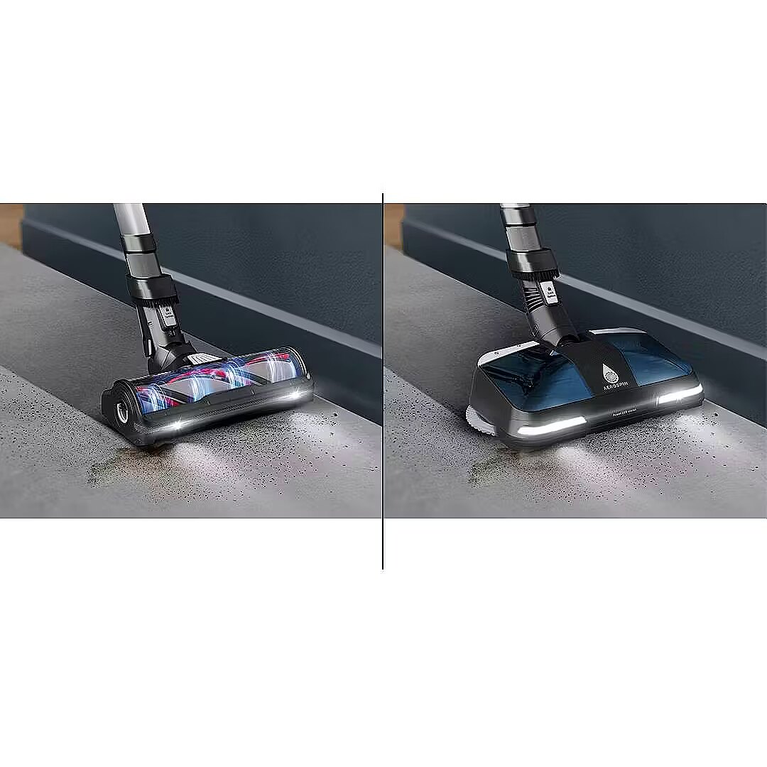 Flex tehnoloogia ulatub sügavale mööbli alla, tagades puhastuse igal pool ilma kummardamata, koos LED-ribadega, et jälgida tolmu isegi raskesti ligipääsetavates kohtades. Aerospin aqua otsik