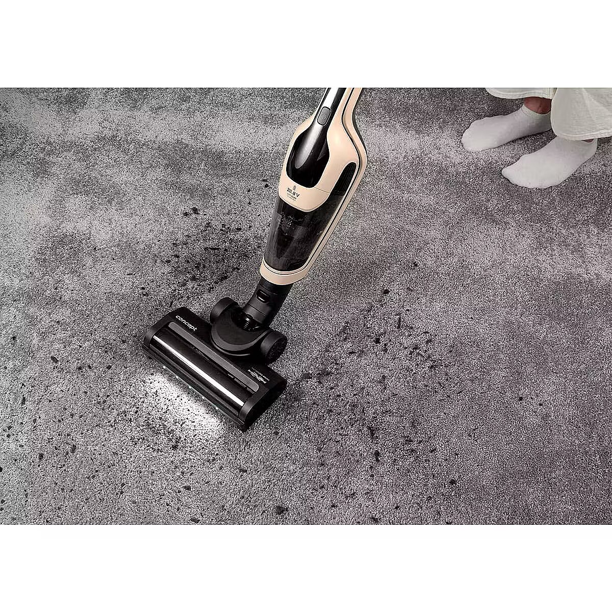 Special functions - 3 w 1: odkurzacz pionowy, odkurzacz ręczny, mop 3 tryby pracy: niski, średni, wysoki Składana rączka dla łatwiejszego przechowywania Styki ładowania wbudowane w konstrukcję Oświetlenie LED w turboszczotce Wyświetlacz LED