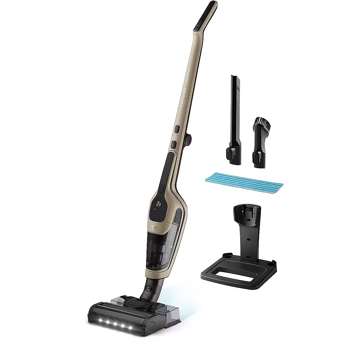 Odkurzacz pionowy 3 w 1 Aquaglide Concept VP4220 umożliwia odkurzanie i mycie jednocześnie, i to w jednym ruchu. Wystarczy napełnić zbiornik wodą, zwilżyć ściereczkę mopującą i można rozpocząć sprzątanie. Mopowanie można wykonywać równocześnie z odkurzaniem lub osobno - w zależności od potrzeb. Ściereczkę czyszczącą można łatwo zdjąć i wyprać w pralce, dzięki czemu jest zawsze gotowa do kolejnego użycia.