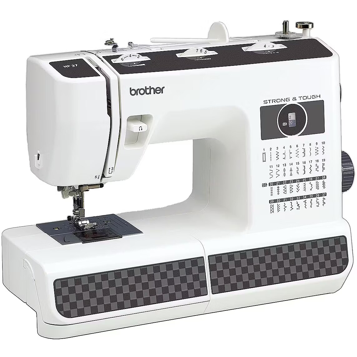 LongSummaryDescription - Brother HF37. Product colour: Black, White, Type: Semi-automatic sewing machine, Sewing machine functions: Sewing. Power supply type: Electromechanical. Width: 407 mm, Depth: 200 mm, Height: 310 mm. Sewing machine accessories included: Cover