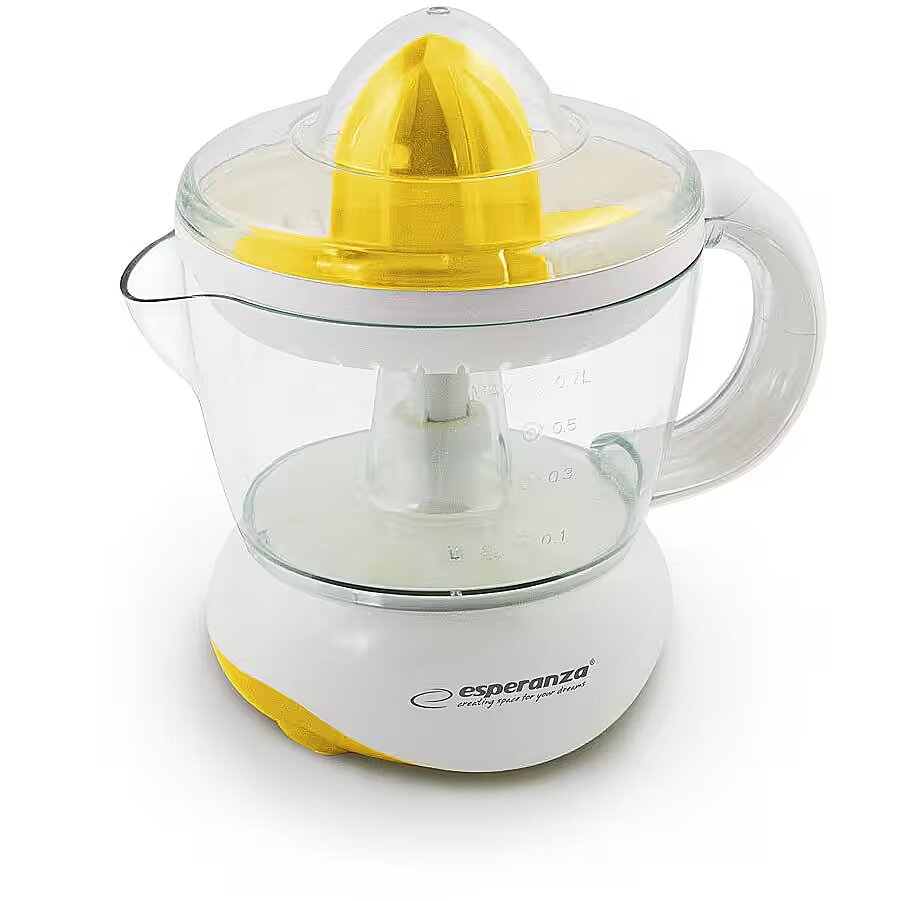 Start a new day of serving healthy vitamin juice prepared at home. With extractor Esperanza you get fresh citrus juice quickly and efficiently whenever you want. It is equipped with a universal cone for large and small citrus. For better performance cone rotates automatically to the right or left side. Our citrus is indispensable in the kitchen for those who value their own health and the health of their loved ones.