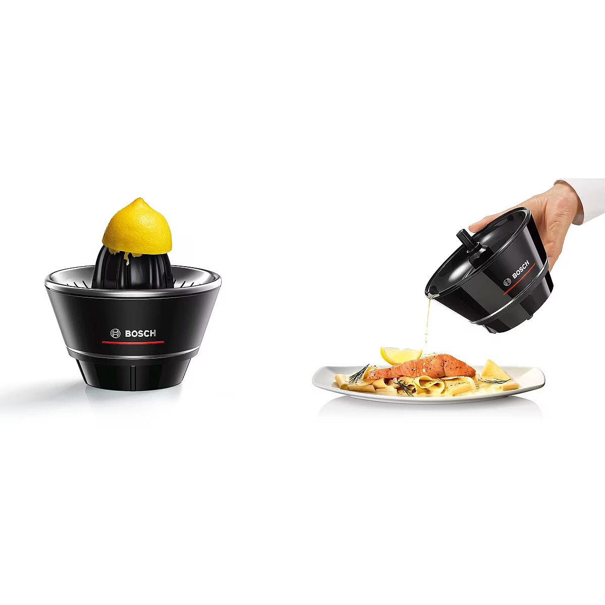 Title - Bosch MCP72GPB citrus press Plastic, Stainless steel Black, Transparent