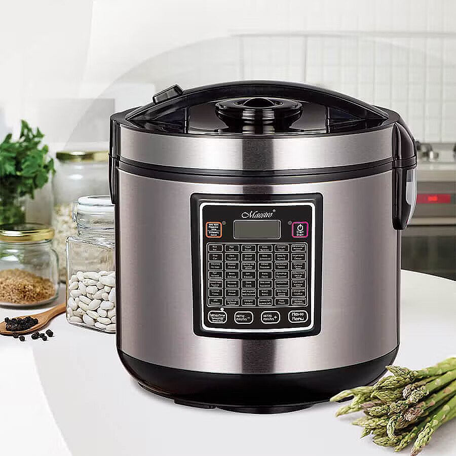 Description - Multicooker Maestro MR-793 to wszechstronne urządzenie kuchenne, które umożliwia przygotowanie różnorodnych potraw dzięki misie o pojemności 5 litrów oraz mocy 900 W. Obudowa wykonana z trwałej stali nierdzewnej i tworzywa sztucznego zapewnia wytrzymałość oraz nowoczesny wygląd. Multicooker oferuje aż 42 programy do gotowania, smażenia i pieczenia, co sprawia, że jest idealnym rozwiązaniem do codziennych kulinarnych wyzwań.