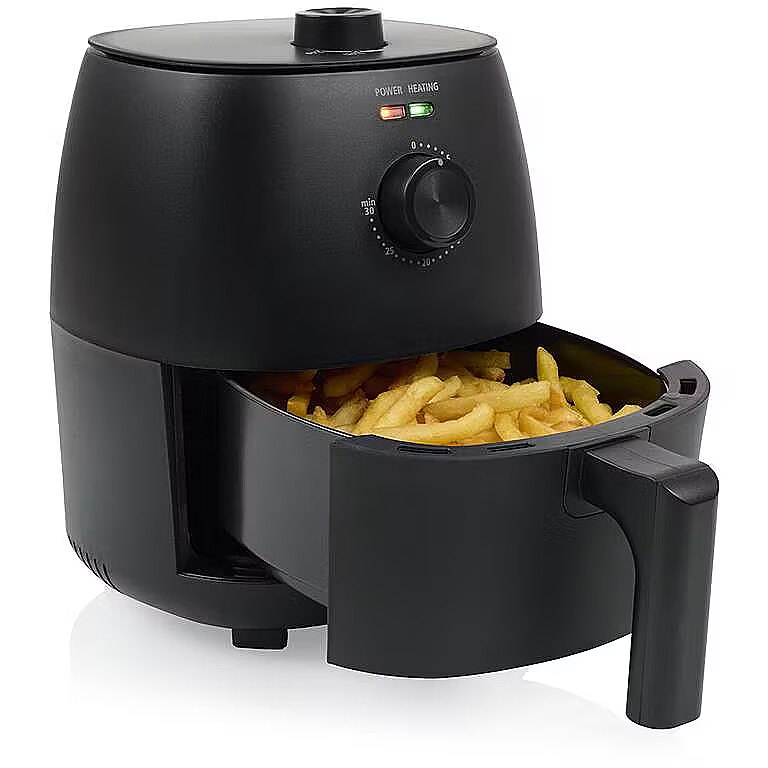 LongDesc - Discover a healthier and more convenient way to enjoy your favorite fried foods with the Tristar FR-9015 Mini Digital Airfryer. Experience the convenience of cooking with a compact 2L capacity, ideal for smaller kitchens or limited countertop space. Fry, bake, and grill your meals without the need for excess fat or oil. The airfryer is easy to control, thanks to the analog panel. The matte black housing makes sure the airfryer will add a touch of style to your kitchen.Space-saving designMaximize your kitchen space with the compact design of the Tristar FR-9014 Mini Airfryer. Its compact footprint is ideal for any kitchen. The 2L capacity is ideal for a 1 or 2 person household. The analog control panel makes this airfryer easy to use, simply turn the knob to set the correct temperature or timeHealthier, oil-Free cookingBy utilizing advanced air frying technology, the Tristar FR-9014 ensures evenly cooked crispy dishes without the need for oil or fat. By circulating hot air around your food, the airfryer produces crispy, golden results with significantly less fat. Enjoy a healthier way of cooking that doesn't compromise on taste.Convenient cooking optionsIts adjustable thermostat, ranging from 80°C to 200°C, provides precise control over cooking temperatures. Plus, the built-in timer function adds convenience to your cooking routine. Thanks to the powerful 1150W motor, cooking delicious meals has never been quicker.What's in the box?Tristar FR-9014, grill rack, instruction manual