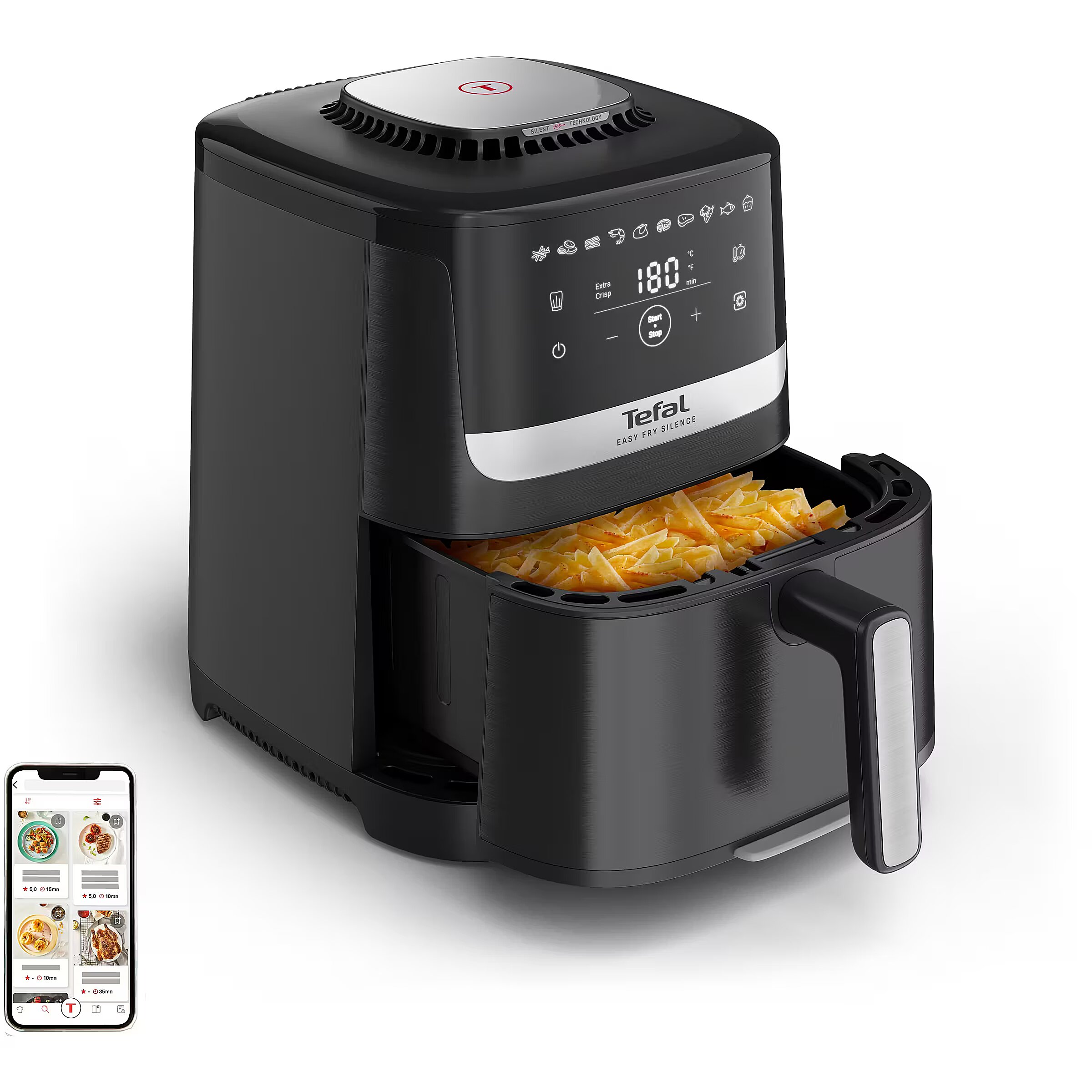 Title - Tefal Easy Fry Silence EY5528E0 fryer Single 5 L Stand-alone Hot air fryer Black, Stainless steel