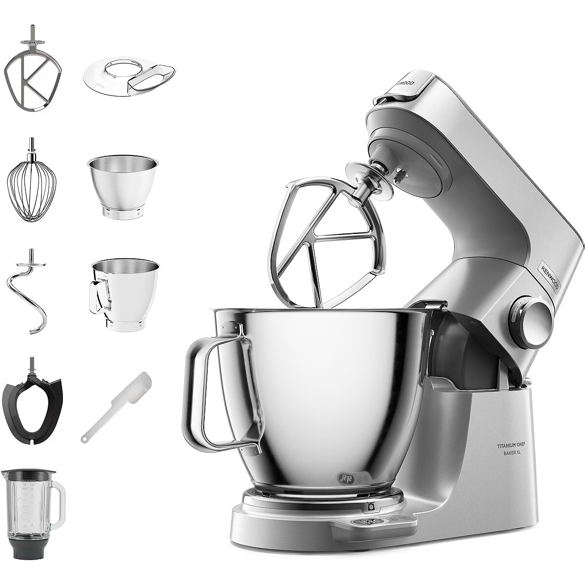 ShortSummaryDescription - Kenwood Titanium Chef Baker XL, 7 L, Stainless steel, Rotary, 1.6 L, Knead, Mixing, Stainless steel