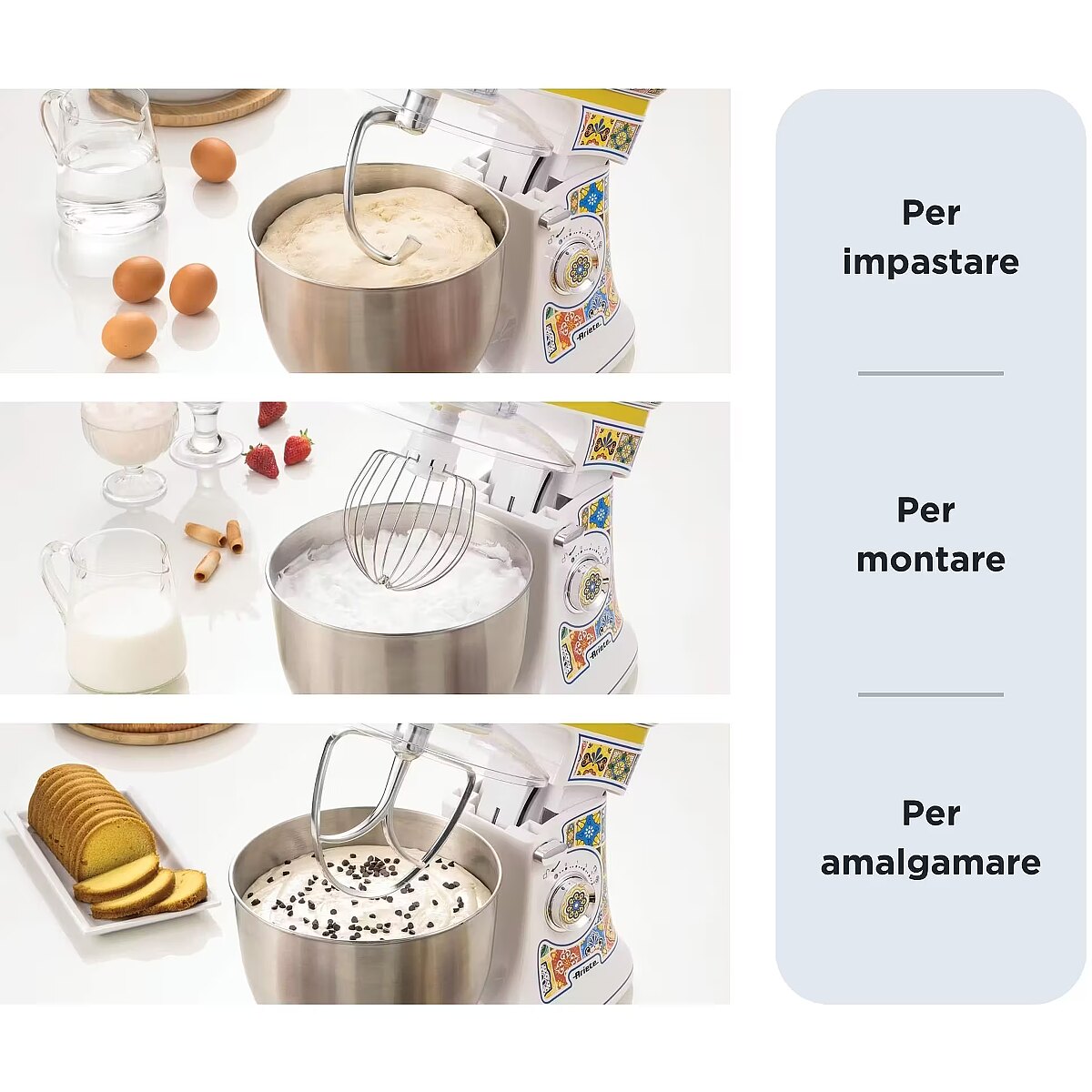 Packaging content - Accessories included - gancio impasto duro, frusta per montare, coperchio paraschizzi