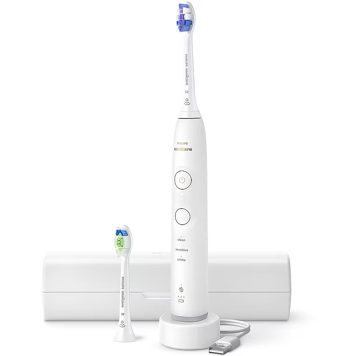 Description - Advanced care for sensitive teeth and gums Gently removes 10 x more plaque* The Philips Sonicare Series 6500 electric toothbrush features Next-Generation Sonicare technology, a dedicated Sensitive mode, 3 intensity levels, pressure alert and two brush heads: S2 Sensitive and W2 WhiteningReplacement reminderModes and IntensitiesSmarTimer and BrushPacerPhilips Sonicare app21-day battery lifeTravel caseExtra care for sensitive teethNext-Generation Sonicare TechnologyVisual pressure sensor- in hard-to-reach areas vs. a manual toothbrush in 6 weeks.