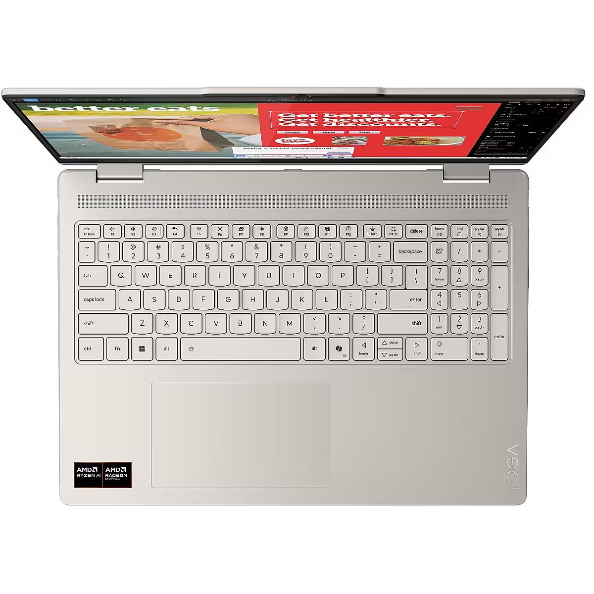Name - Lenovo Yoga 7 2-in-1 16AKP10 | Seashell | 16 " | OLED | Touchscreen | 2.8K WQXGA+ | 2880 x 1800 pixels | AMD Ryzen AI 7 | 350 | 16 GB | Soldered LPDDR5x | Solid-state drive capacity 1000 GB | AMD Radeon 860M Graphics | Windows 11 Home | 802.11be | Bluetooth version 5.4 | Keyboard language English | Keyboard backlit | Warranty 24 month(s) | Battery warranty 12 month(s)