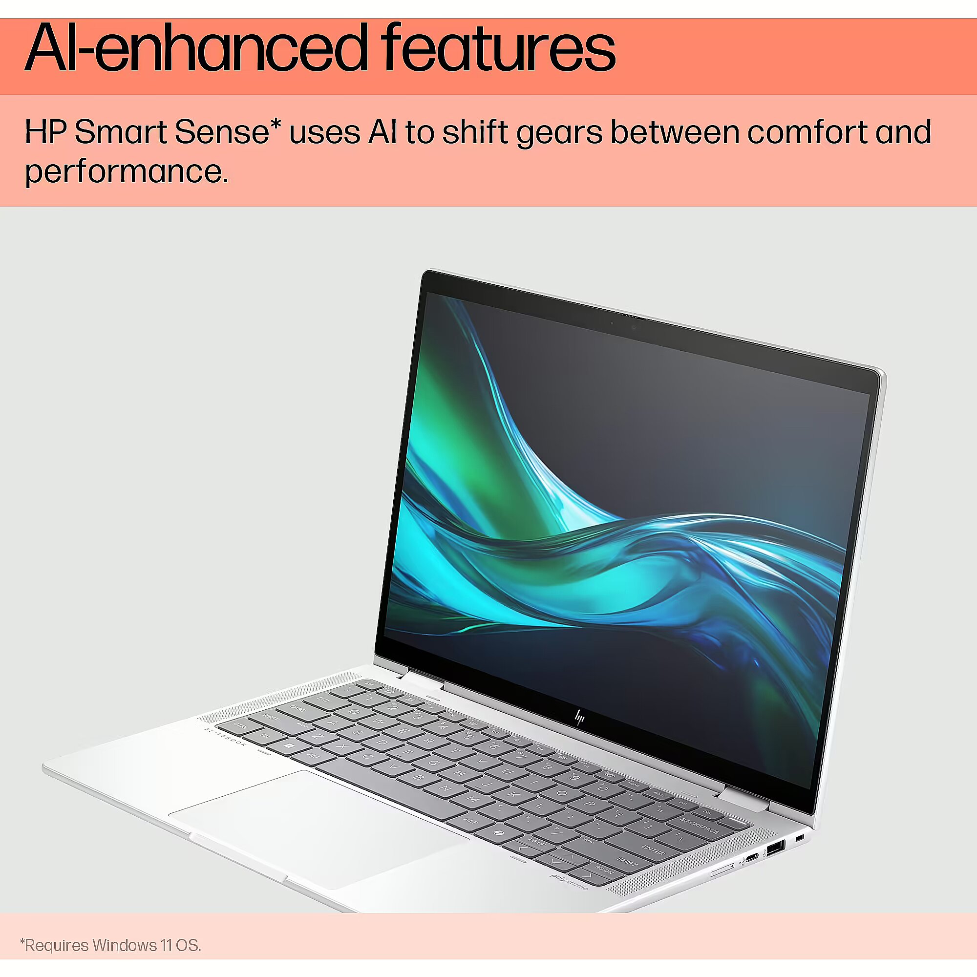 Title - HP Elite x360 G11 Intel Core Ultra 7 155H Hybrid (2-in-1) 35.6 cm (14") Touchscreen WUXGA 16 GB LPDDR5x-SDRAM 512 GB SSD Wi-Fi 6E (802.11ax) Windows 11 Pro AI PC Silver