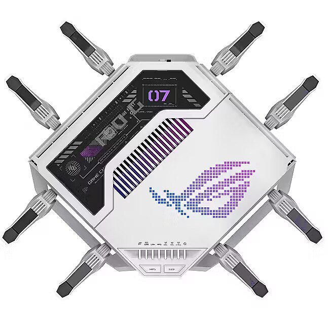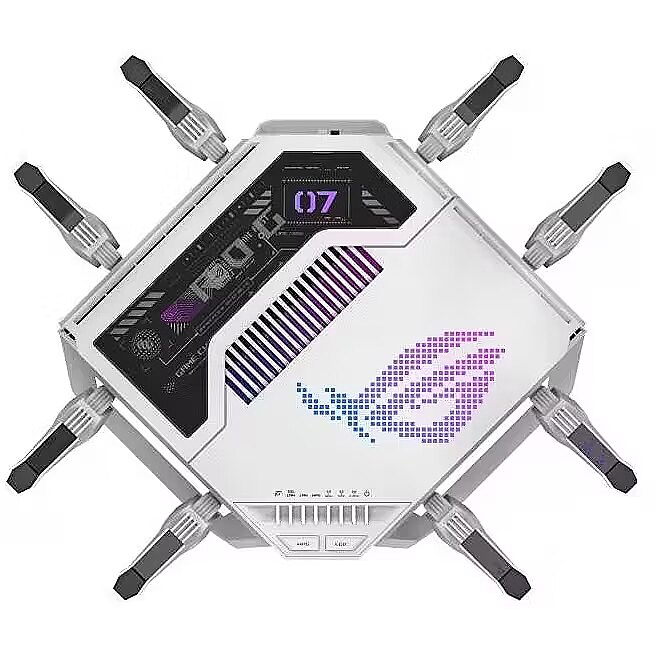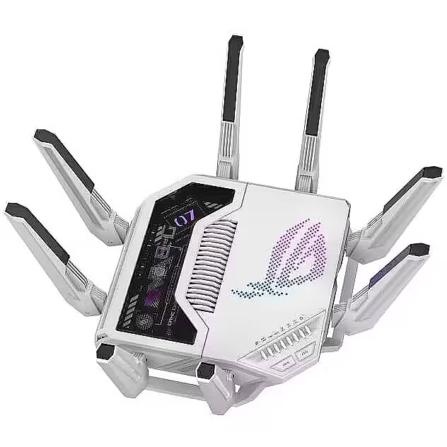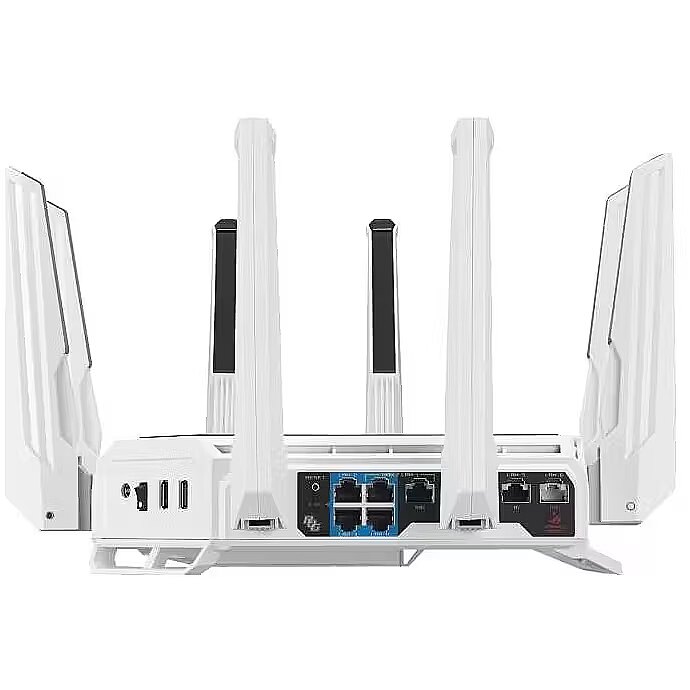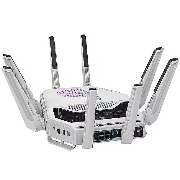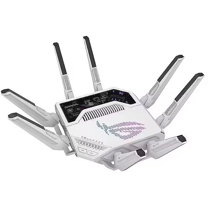 ShortSummaryDescription - ASUS ROG Rapture GT-BE19000AI, Wi-Fi 7 (802.11be), Tri-band (2.4 GHz / 5 GHz / 6 GHz), Ethernet LAN, White, Tabletop router