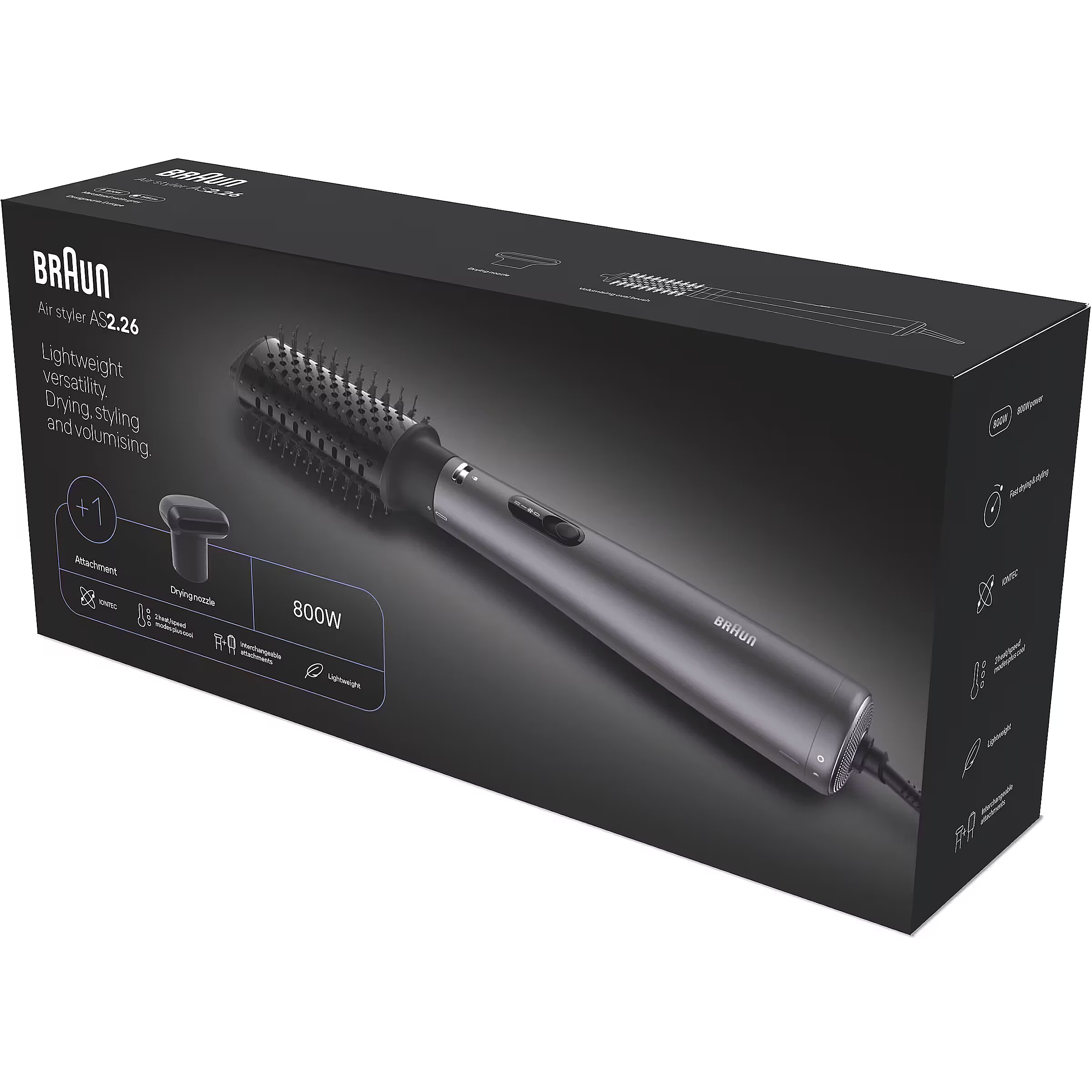 LongSummaryDescription - Braun AS2.26. Control type: Scrollbar. Product colour: Black. Cord length: 1.95 m. Power: 800 W, Power source: AC. Quantity per pack: 1 pc(s)