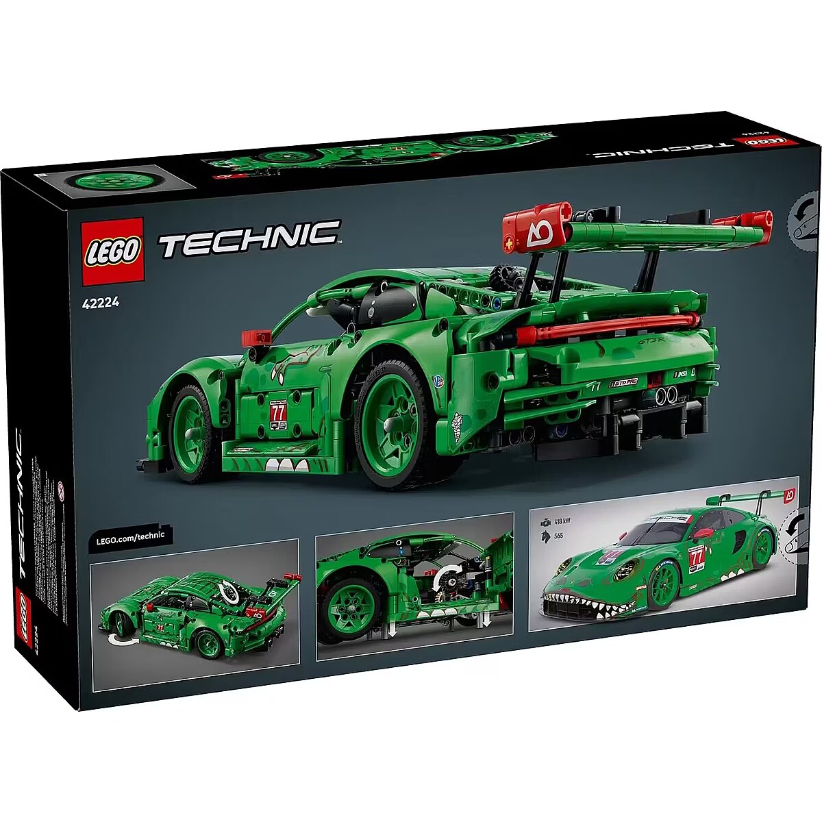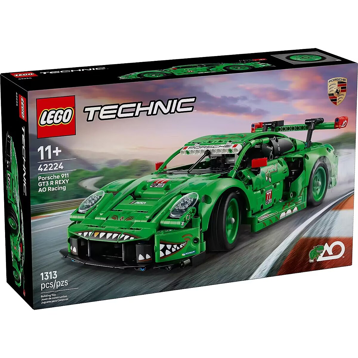 Description - Blocks Technic 42224 Porsche 911 GT3 R REXY A O Racing Car Rev up the action with this dinosaur-themed race car for kids aged 11 and up. The LEGO Technic Porsche 911 GT3 R REXY AO Racing (42224) set is packed with exciting details, making it a perfect choice for boys and girls who love high-speed thrills. Kids can steer the car using the top dial, explore the working suspension on all four wheels, rear-wheel drive with a differential, a 6-cylinder boxer engine with realistic firing order, opening doors and trunk, and synchronized pneumatic lifts. With its bold T-Rex-inspired design, this model looks just as impressive on display as it does on the racetrack. This set is an ideal gift for dinosaur fans and car enthusiasts. LEGO Technic sets feature realistic moving mechanisms that give young builders an accessible introduction to engineering. Kids can build with confidence using the LEGO Builder app, which lets them zoom, rotate in 3D, and track progress with easy-to-follow digital instructions. The set contains 1313 pieces of high-octane fun.