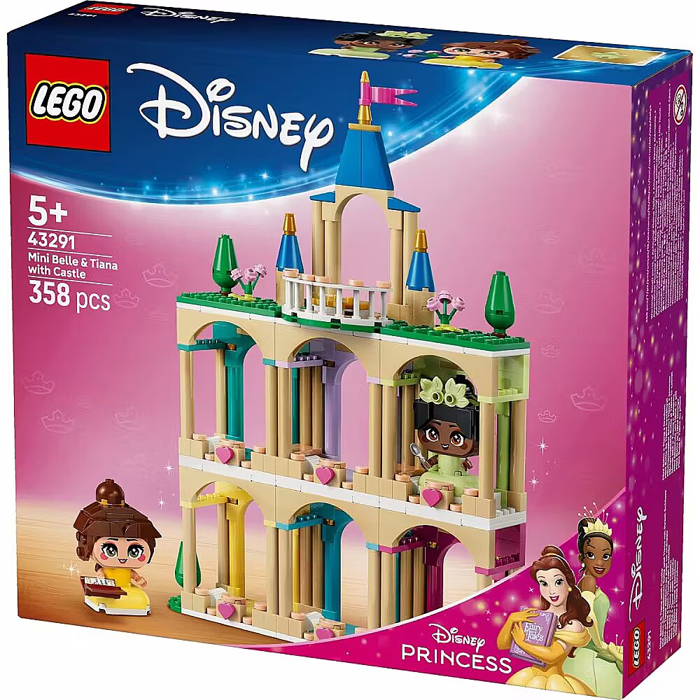 Description - Blocks Disney 43291 Mini Belle and Tiana with Castle Show your love of Disney Princess characters to fans aged five and up with the LEGO Disney Princess Baby Belle and Tiana Castle (43291) set. Featuring a book and spoon, Baby Belle and Tiana inspire storytelling fun. Each character has movable arms and can hold accessories. The set features a three-story castle and color-coordinated rooms for each collectible character. The central tower features a rotating platform on which any character from the series can be displayed.