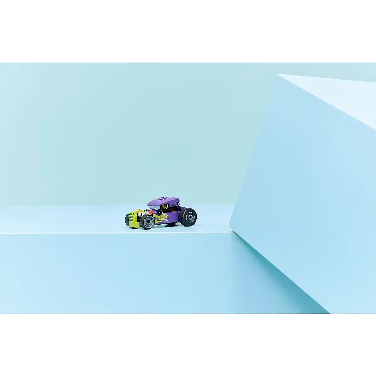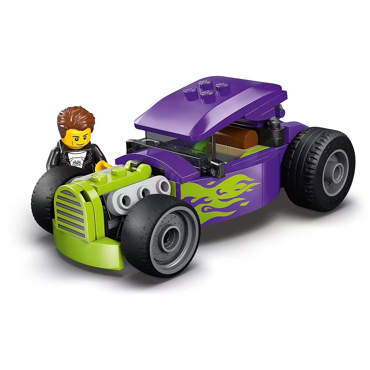 Description - Blocks City 60485 Hot rod Young car racing fans aged five and up can buckle up and get ready for high-speed racing action with the LEGO City Hot Rod (60485) set. This buildable car model delivers thrilling action with detailed features like large rear tires, a driver's cockpit with a pop-up roof, and a cool purple color scheme with neon-green flames. Just add the driver minifigure to role-play high-speed races.