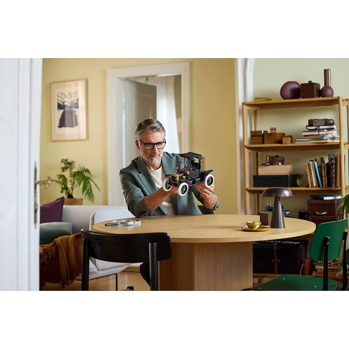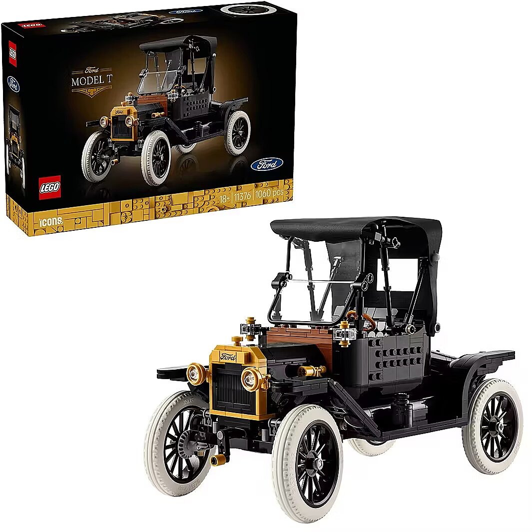 Description - Ford Model T Celebrate an icon of automotive history with the LEGO Icons Ford Model T (11376) model car kit for adults. This authentic replica of the 1910s automobile comes with a fold back fabric roof, fold-down split windshield and a single opening passenger door. Other features include an opening rear trunk and a highly detailed drivers cab with working steering. Lift the seat to access the gas tank. Lift the hood panels from both sides to reveal the engine and turn the crank to spin the fan. Finished with black bodywork, golden accents and tall spoked rims with slim white rubber tires, this vintage car decor model makes an elegant display for the home or office. This premium model makes a great gift idea for lovers of classic American cars. Discover the inspiring range of creative LEGO projects (sold separately) designed specifically for adults. Build smarter with the LEGO Builder app - zoom, rotate in 3D, track progress and follow step-by-step digital instructions. Set contains 1,060 pieces. VINTAGE MODEL CAR KIT FOR AGES 18+ - Embark on a nostalgic journey with the LEGO Icons Ford Model T (11376), a highly detailed model car kit for adults VINTAGE CAR MODEL - Recreate the iconic 1910s automobile with gleaming black bodywork, golden accents, a foldback fabric roof and tall spoked rims with slim white rubber tires FORD MODEL T FUNCTIONS - Fold back the roof and fold down the split windshield, lift the hood from both sides to see the engine, turn the crank to spin the fan and lift the seat to access the gas tank CLASSIC DISPLAY PIECE - This vintage car decor display model makes an elegant centerpiece for the home or office GREAT GIFT FOR CAR LOVERS - Celebrate a birthday, the holidays or any other special occasion with this vintage car building set, a great gift for lovers of classic American cars 3D BUILDING INSTRUCTIONS - Get the most out of this model car kit with the LEGO Builder app, where you can view the model in 3D, track your progress and explore other building sets CREATIVE PROJECTS FOR ADULTS - This LEGO Icons Ford Model T building set is part of the inspiring range of creative LEGO projects (sold separately) designed specifically for adults DIMENSIONS - The model in this 1,060-piece LEGO Icons Ford Model T building set measures over 7.5 in. (20 cm) high, 11 in. (29 cm) long and 5 in. (13 cm) wide