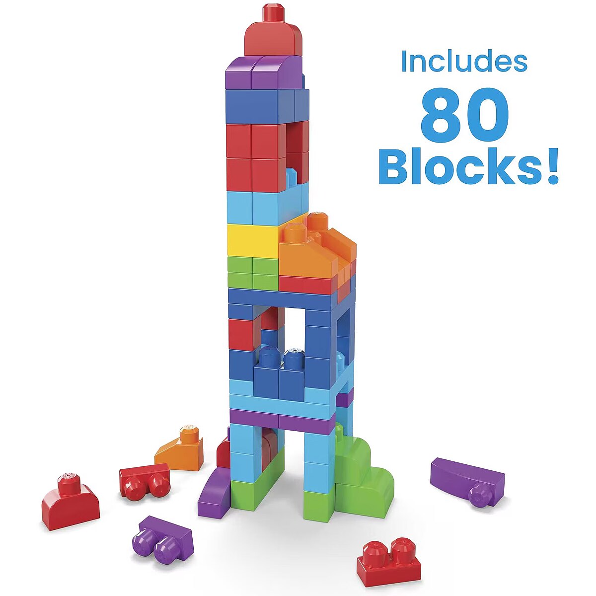 LongDesc - Build Them Up with the first blocks in home. Spark your little builder's creativity with this set of 80 big and vibrant building blocks. Easy to grip, stack, and pull apart, these building blocks are the perfect fit for your toddler's little hands and growing mind. When playtime is over, blocks can be stored in the bag for easy cleanup.