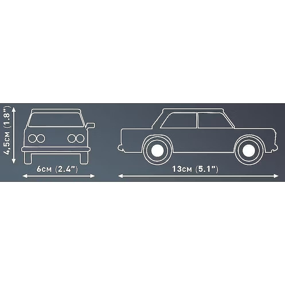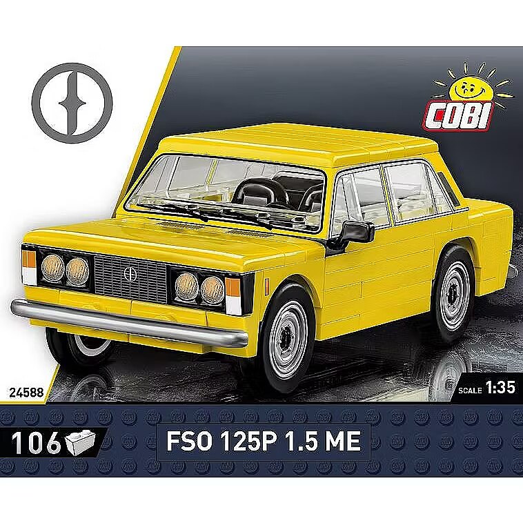 Description - The FSO 125p 1.5 ME is a mid-range passenger car produced at the Warsaw Żerań Car Factory. It is commonly referred to as the Big Fiat. In January 1986, production of a modernised version of the 125p began under the designation 1.5 ME. It was an economical version equipped with a package of changes aimed at maximum fuel efficiency. Just a few decades ago, this vehicle was the envy of many motoring fans. The model in the scale of 1:35, made of 100% COBI bricks, very faithfully reproduces the characteristic shapes of the original FSO 125p in the version 1.5 ME. Thanks to 106 elements, minor modifications and alterations of the vehicle are possible. In this model, we resigned from stickers. They have been replaced by permanent prints that do not rub off even during intensive play. The rotating wheels equipped with tyres are ideal for moving the model around during play. The COBI building block car is not only a toy, but also a historical model ideal for collecting! 106 high quality pieces manufactured in the EU by a company with over 20 years of tradition, meet safety standards for children's products, fully compatible with other building block brands, printed bricks do not deform or fade during play or under the influence of temperature, clear and intuitive instructions based on drawings and icons, printed block with the name of the car.