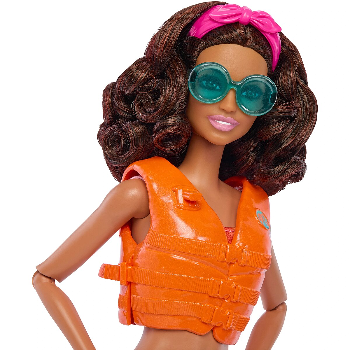 Packaging content - Packaging content - Includes 1 Barbie doll, 1 surfboard, 1 puppy figure, 1 towel and assorted accessories. Doll cannot stand alone. Colours and decorations may vary.