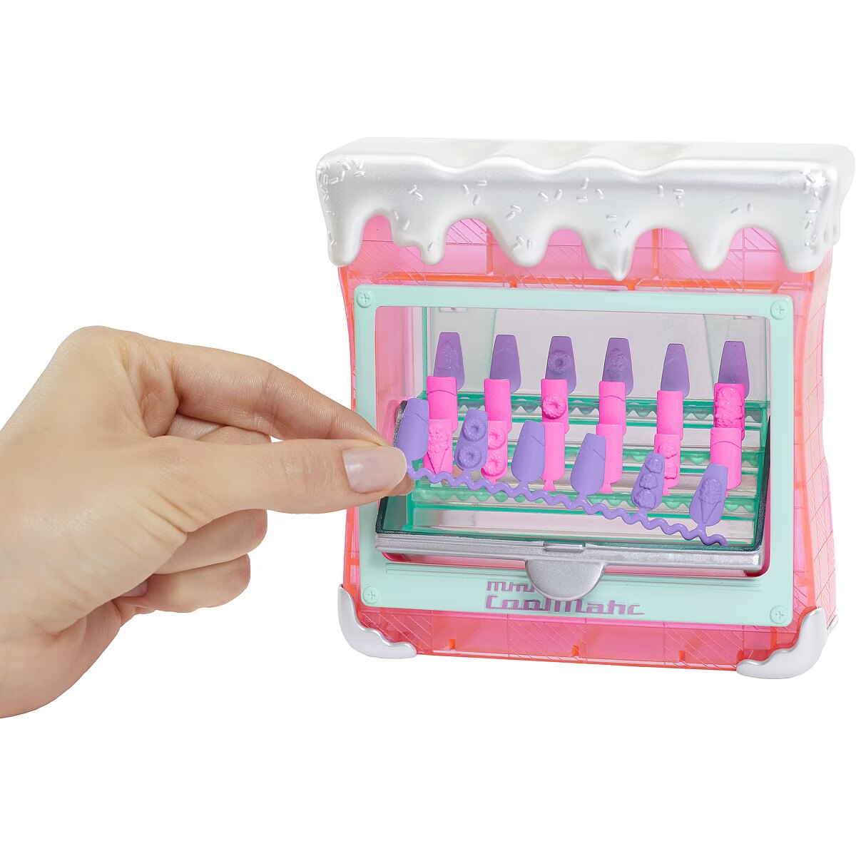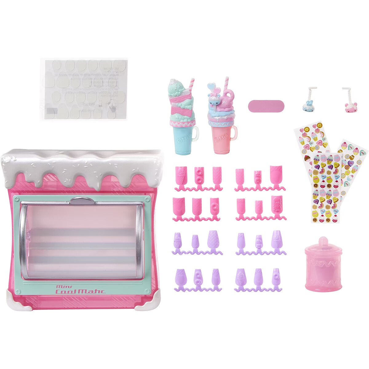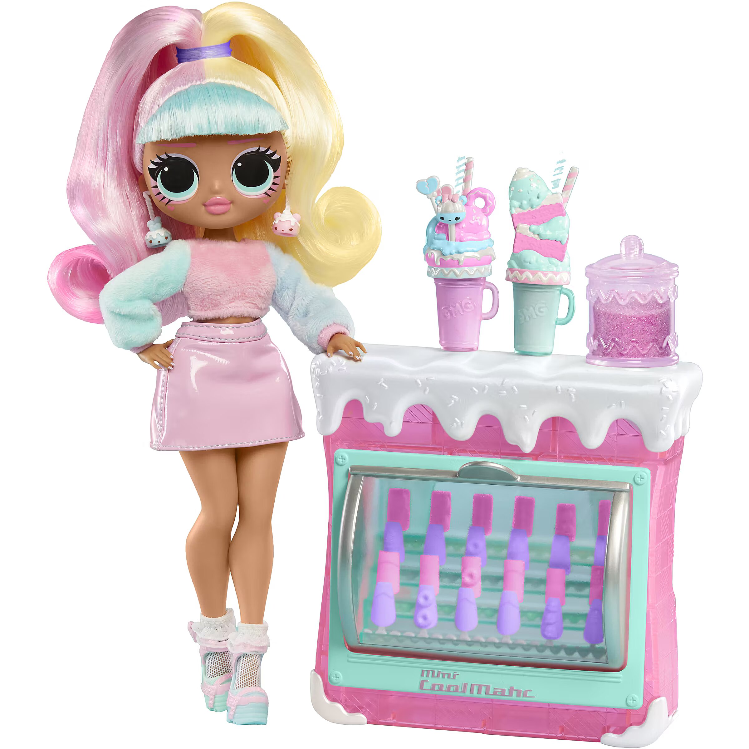 LongDesc - Discover the sweetest surprises with L.O.L. Surprise! O.M.G. Sweet Nails™ – Candylicious Sprinkles Shop™ including an ice cream pop freezer, unique nail accessories, and fan-favorite character, Candylicious, styled in her signature pastel colors and gorgeous hair! Help run the fabulous Candylicious Sprinkle Shop™ and unbox amazing surprises inside, where you can make your own popsicles and serve beautiful milkshakes! First, open up the ice cream pop freezer and reveal 24 pretty, pastel nails that look like popsicles and can be placed on UR own nails and decorated! Look closely at the nails to explore cute dessert-themed details including ice cream cones, doughnuts, and more! Then, discover 2 outrageously fun milkshakes, and open up the bottles to reveal two trendy nail polish colors to apply on the nails! Check out the sweet, pink candy jar and open it up to reveal REAL nail glitter! Now you are all set to get creative and customize your own nails – peel and press the nail adhesives, press on a set of nails, use the nail file to shape your nails, paint them, then finish off your designs with glamorous glitter and dessert-themed stickers for more sweet, styling fun! When designing your nails, don’t forget to place your fingers on the finger grooves on the top of the nail station for greater stability! The pop freezer also serves as a nail display case to store and showcase your delightful popsicle treats when finished! This adorable dessert shop has the sweetest surprises ever with realistic styling to help spark your imagination when running the Candylicious Sprinkles Shop™ with the gorgeous Candylicious Fashion Doll and her fabulous fashions and accessories. Candylicious has stunning features, stylish hair, and is articulated with tons of poses. Pro Tip: Hands are removable for easy dressing. Collect all 3 unique Sweet Nails™ Shops: Kitty K Café™, Pinky Pops Fruit Shop™, and Candylicious Sprinkles Shop™ and create dozens of designs! L.O.L. Surprise fashion dolls with stylish hair, outfits and many detailed accessory pieces make a perfect toy for kids, including 4 years old and up for imaginative pretend play! As gifts for any special occasion, dolls provide hours of social play with siblings and friends! From MGA Entertainment, creators of L.O.L. Surprise fashion and collectible dolls, Rainbow High™ fashion dolls, Na Na Na Surprise dolls, Bratz® fashion dolls, MGA's Dream Ella™, MGA's Glitter Babyz™, Lalaloopsy™, Baby Born® Surprise baby dolls and collectibles, Little Tikes® kids' toys and many other favorite brands.