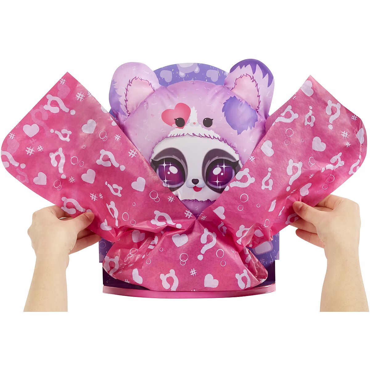 First, rip open the zip at the bottom of the package and lift up the outer pink cover to reveal mysterious wrapping paper! Watch as the paper gets bigger and fuller, and when fully inflated, tear the paper and reveal your adorable costume! But wait, the surprises don't end there! Unfasten the Velcro to reveal the gorgeous Hoops Cutie Tweens doll hidden inside!
