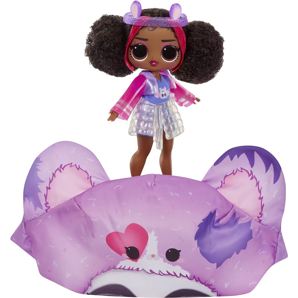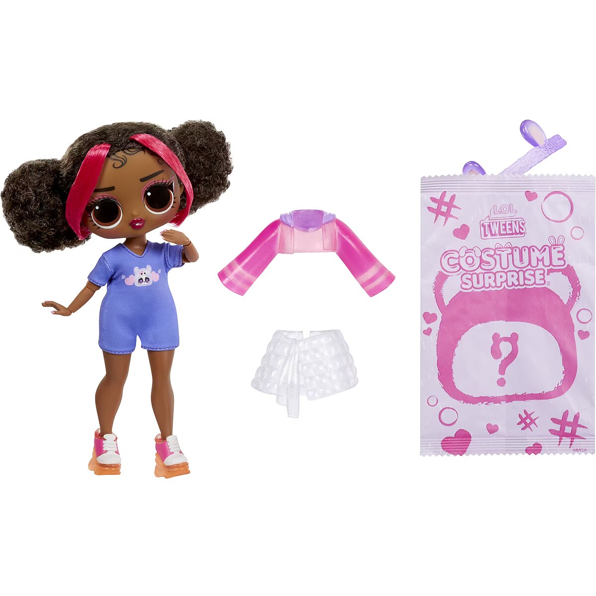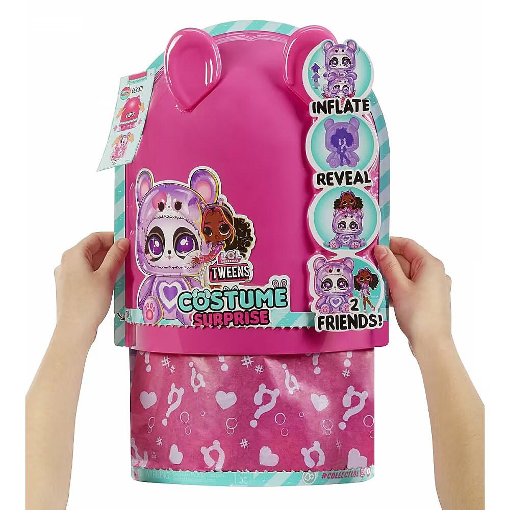 LongDesc - Basketball Shoes or Heels! Watching Sports or Playing Sports! School Alley-Oop or Slam Dunk! – Hoops CutieGet ready to unwrap the ultimate surprise and dive into an unboxing adventure like no other with the all-new L.O.L. Surprise Tweens Costume Surprise™ including fan-favorite fashion doll Hoops Cutie in a trendy new look and her adorable inflatable panda costume. This outrageously fun, experiential reveal is bursting with layers of surprises, perfect for endless imaginative and storytelling play for kids. Discover what’s inside by first tearing the zipper at the bottom of the packaging and lifting up the outer pink shell to reveal a mystery wrapping paper, kicking off the first stage of the inflating process! Watch as the paper grows bigger and fuller and once completely inflated, rip open the paper to discover your charming purple panda costume! But wait, the surprise doesn’t stop there! Undo the velcro from the back of the panda’s head to unveil your gorgeous Tweens Hoops Cutie doll hidden inside! Don’t forget to unbox the unique surprises and remove the Tweens doll from her doll stand to dress her in trendy new fashions and accessories including a fashionable skirt, cute striped jacket, stylish headband with panda ears to match her huggable costume, and chic shoes! Close up the pet costume and watch as it grows and fully inflates, giving you two best friends to play with together – Hoops Cutie and her panda costume! And the fun doesn’t stop there - simply toggle the on and off switch at the bottom of your pet costume to repeat the inflating fun over and over again! Each Tweens doll has stunning features, glamorous hair, her own fabulous style, and comes articulated for tons of posing opportunities alongside her new pet costume friend! Collect all 4 dazzling L.O.L. Surprise Tweens Costume Surprise™ fashion dolls and their soft pet costumes: Aya Cherry with her bunny costume, Emma Emo with her kitty costume, Ali Dance with her puppy costume, and Hoops Cutie with her panda costume! Don’t forget to watch and catch the Tweens dolls and their pet costumes in action in the all-new L.O.L. Surprise SkateDance Movie, premiering October 2024 on YouTube Kids!