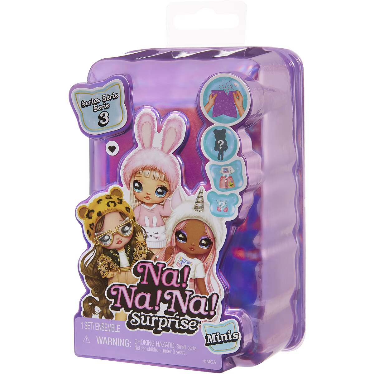 LongDesc - Collect your favorite Na! Na! Na! Surprise original characters in a brand new scale with the all new Na! Na! Na! Surprise Minis Series 3! You won't know which doll you got until you unbox them! Each doll has beautiful face details, rooted hair and adorable animal-inspired fashions that can be mixed and matched across all Na! Na! Na! Surprise Minis dolls. Included is 1 doll, 1 outfit and 1 pair of shoes. MAY CONTAIN: 1 pair of socks. Perfect size for a stocking stuffer, Easter basket or birthday gift bags! Collect all 12 Na Na Na Surprise Minis - Tuesday Meow, Cora Cowgirl, Jenny Jaguar, Mermaid, Panda Boy, Mimi Joyful, Aubrey Heart, Ari Prism, Catie Cat, Tiger Linda, Whitney Sparkles, Zara ZebraNa! Na! Na! Surprise fashion dolls and playsets are for collectors and kids – girls and boys 4 to 10 years old and up who are animal-inspired fashionistas that are big on friendship, fabulosity, and all things cozy, soft and fuzzy. From MGA Entertainment, creators of LOL Surprise fashion and collectible dolls, Rainbow High fashion dolls, Na Na Na Surprise fashion dolls, Bratz fashion dolls, MGA's Dream Ella fashion dolls, MGA's Glitter Babyz baby dolls, Lalaloopsy dolls, Baby Born Surprise baby dolls and collectibles, Little Tikes kids toys and many other favorite brands.