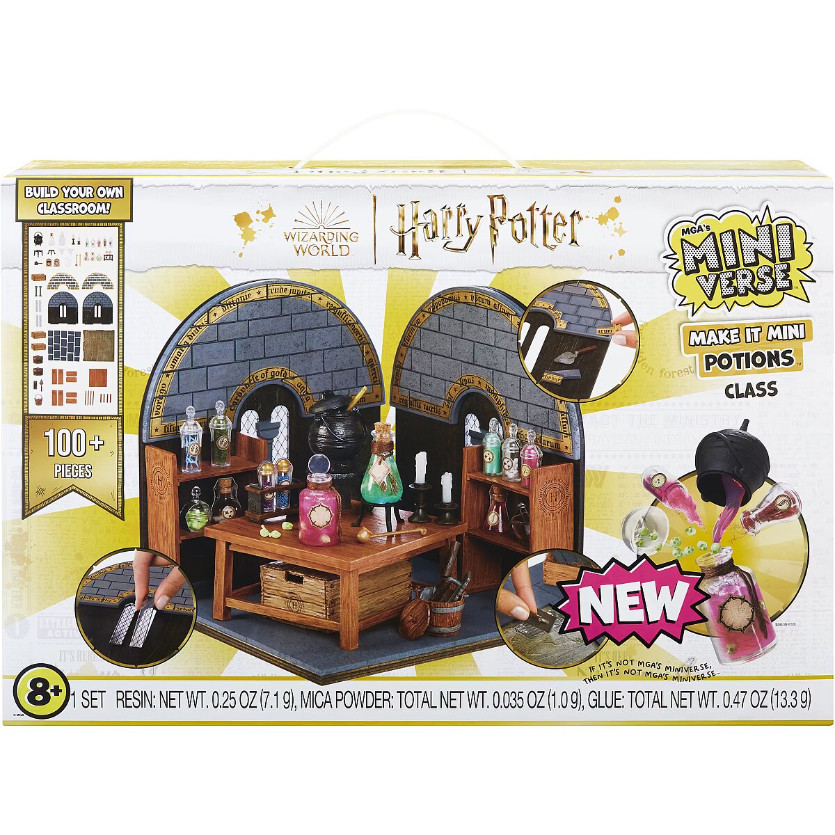 LongDesc - Harry Potter™ has arrived to MGA's Miniverse™ ! All new DIY Make It Mini Potions™ CLASS includes mini replica items to build, make, set, and display! Each pack includes 100+ pieces to build a mini replica version of the Potions Class from the Harry Potter film series! Follow the instructions to build your mini Potions Class. From the walls to the floor to the furniture, there's so much to MAKE in this set. Once you've finished creating your Potions Class, let it set until dry. Once it's dry, you've got a mini replica Potions Class ready to display! So much storage and space to display your Make It Mini Potions™!Exclusive potions and accessories included that can only be found in this set! Make sure to set your mini potions in the sun or 365nm UV Light!The fun doesn't stop there! Your finished Potions Class is not the only item worth collecting. From mini replica versions of cauldrons to mini mixing spoons - there are so many unique Make It Mini Potions™ Class replica ingredients, packages, and accessories to collect!Collect all Make It Mini Potions™ Collectibles! Visit the MGA's Miniverse™ Store to shop and learn more about all the MAKE IT creations you can collect! If it’s not MGA's Miniverse™, then it’s not MGA's Miniverse™!DISCLAIMER: ALL Ingredients are NOT edible and do include resin play. Not suitable for kids under 8 years of age.
