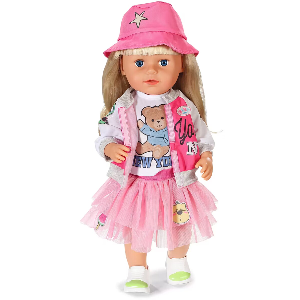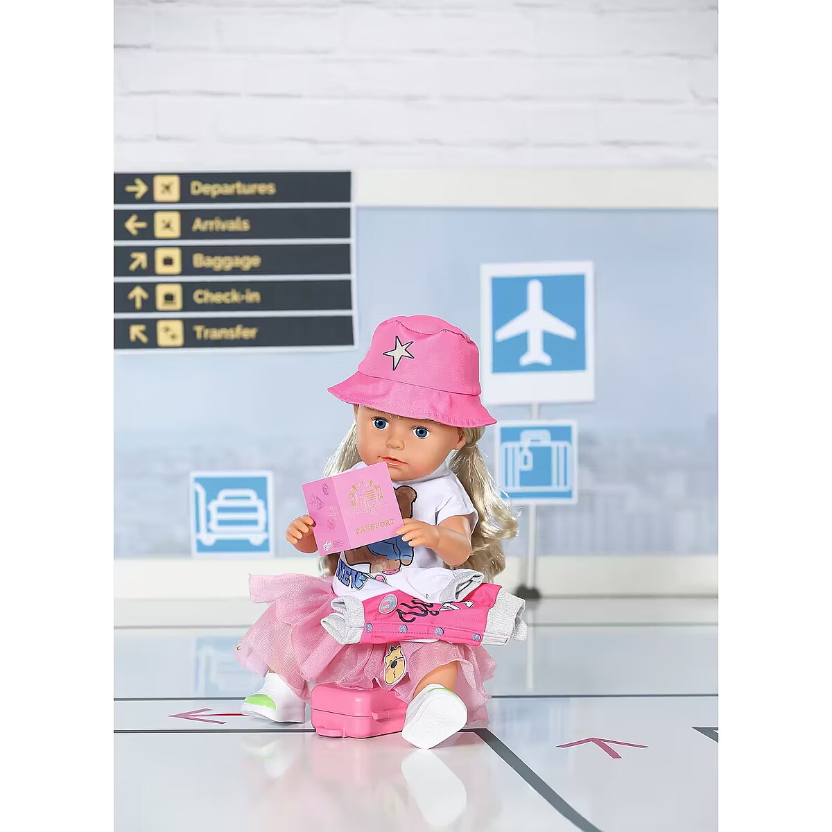 LongDesc - This outfit turns the airport into a catwalk: the BABY born travel outfit consisting of jacket, T-shirt, tulle skirt, shoes and hat is perfectly coordinated. Just like the matching suitcase. Don't forget your passport and have a good flight!