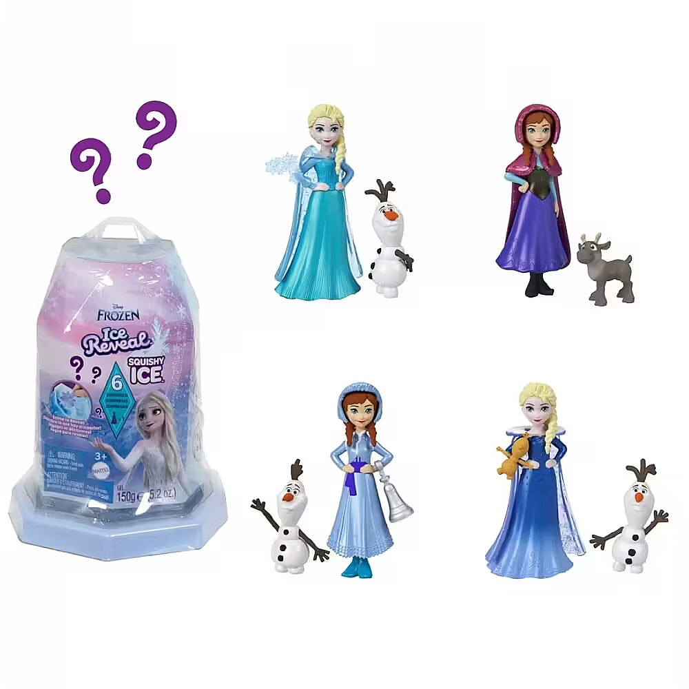 Description - Disney Frozen Ice Reveal Surprise Small Doll With Ice Gel Unboxing gets a sensory spin with Disney Frozen Ice Reveal dolls! To reveal the toys inside, kids use the snowflake scoop to dig through the Squishy Ice gel. The mystery small doll will be an Anna or Elsa doll in a signature look, plus an Olaf or baby Sven character friend. Additional surprises include a cape or hat, themed accessory and double-sided backdrop piece. For more play and display fun, kids can set up or store the doll and pieces in the ice-themed container. Each doll sold separately, subject to availability. Dolls cannot stand alone. Colors and decorations may vary. Inspired by the animated characters from Disney's Frozen and Disney's Olaf's Frozen Adventure, Ice Reveal dolls each come with 6 surprisesall hidden in Squishy Ice! Kids start by opening the ice-themed container and using their 'ice powers' to dig through the gel-like Squishy Ice with the snowflake scooprevealing mystery bags filled with surprises! Each set includes a surprise Anna or Elsa small doll (3.5 inches) and a fan-favorite character friend: Olaf the snowman or Sven the reindeer as a baby. Additional surprises include a cape or hat, a themed accessory and a double-sided backdrop that fits inside the container. Kids can arrange the backdrop, doll and play pieces in the container for play and display fun. Mystery Disney Frozen characters include Anna and Elsa from both Frozen and Olaf's Frozen Adventure. Fans can collect them all! Makes a perfect gift for kids to play out their favorite movie moments or make up their own adventures! Product shipped randomly, it is not possible to select a specific model. The price is for 1 pc.