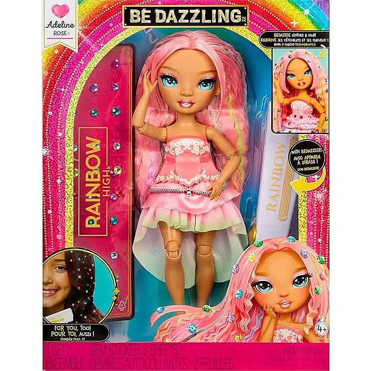 LongSummaryDescription - Rainbow High Be Dazzling Fashion Dolls - Adeline Rose (Pink). Doll type: Fashion doll, Doll's gender: Female, Recommended age (min): 4 yr(s), Suggested gender: Boy/Girl, Material: Fabric, Plastic, Product colour: Rose