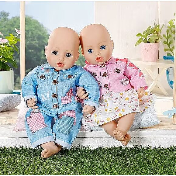 Description - Zestaw ubranek BABY ANNABELL Outfit Annabell i Alexander są dziś przebrani. Alexander ma na sobie dżinsową kurtkę i spodenki. Na zestawie naszywane są zabawne łatki. Kurtka ozdobiona jest błyszczącymi owczymi guzikami. Różowa kurtka Annabell ma takie same. Jej rękawy są zadrukowane kwiatami lilii wodnej. Biała spódnica jest pokryta innymi mieszkańcami stawu, nie zapominając o ulubionych owieczkach Baby Annabell. Różne wzory. Produkt wysyłany losowo, brak możliwości wyboru konkretnego modelu. Cena dotyczy 1 zestawu.