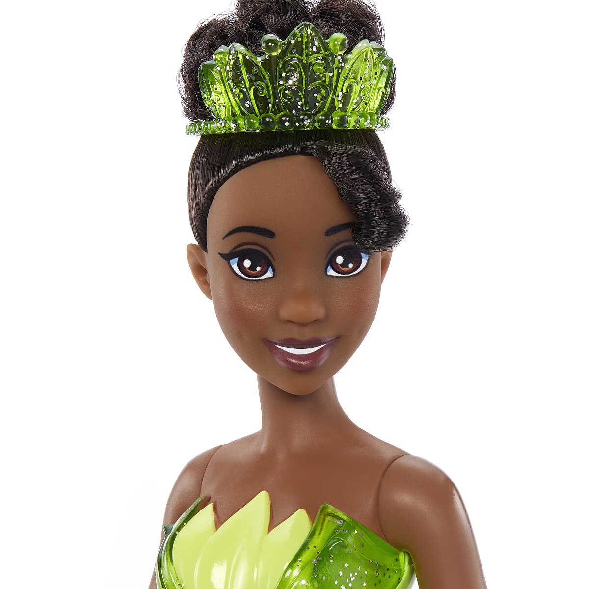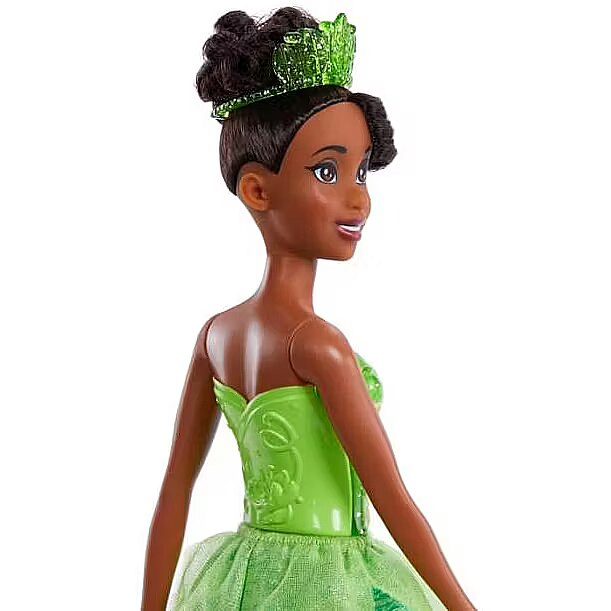 LongSummaryDescription - Disney Princess Tiana Doll with Sparkling Fashion & Accessories, Inspired by The Princess & the Frog. Doll type: Fashion doll, Doll's gender: Female, Recommended age (min): 3 yr(s). Height: 279.4 mm, Weight: 150 g. Material: Plastic, Product colour: Green