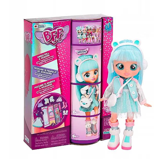 LongDesc - Meet the new BFF’s! Now your favourite characters from Cry Babies Magic Tears have grown up and are teens! They are 13 years old and have many adventures. There are 6 characters to collect, they all wear a trendy and fashionable outfits. They have 15cm long colourful hair, glass eyes and a fully articulated body! Which BFF will you find? Turn the tube to find out! Unbox and discover their wardrobe together with 9+ surprises: 2 pieces of clothing, a bag, a headband or a hat, a pair of matching shoes with a pair of socks and a necklace!