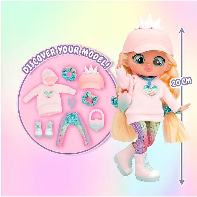 Description - Meet your new Best Friends BFFs! Now your favourite characters from Cry Babies Magic Tears have grown up and are now teenagers! They are 13 years old and there are lots of adventures waiting for them. There are 6 dolls to collect in the collection, and each one is dressed in a trendy outfit in line with the latest fashion shout. They are 15cm tall, have colourful hair, crystal eyes and fully movable bodies. Which Best Friend will you choose? Turn the tube to find out! Unpack and discover their wardrobe along with over 9 surprises: 2 outfit pieces, a bag, a headband or headpiece, a pair of matching shoes with socks and a necklace! The BFF dolls have silky nylon hair and truly fashionable outfits! Each doll is packaged in a one-of-a-kind box that is also their wardrobe! Rotate the tube pieces to discover the different poses your Best Friend can assume! The Cry Babies dolls are characters from the 13-episode Cry Babies BFF series available on the Kitoons YouTube channel. Dotty has stylish, colourful hair, crystal eyes and a moving body! She wears a fashionable outfit and special necklace polka dot dress with a metallic leather jacket, Maryjane boots on a platform and plaid socks! Add her shoulder bag, an adorable hat with dog ears and a matching BFF necklace! Cry Babies BFFs are the perfect gift for girls ages 3 and up! Give a Best Friend as a birthday gift or for any other occasion! Special features: Characters known from the Cry Babies world Cry Babies products grow with children BFFs are designed for girls 3+ The packaging is an integral part of the fun is wardrobe! 9 surprise accessories to discover Dolls have movable bodies so they can pose in their existing fashion craze as if on the catwalk!