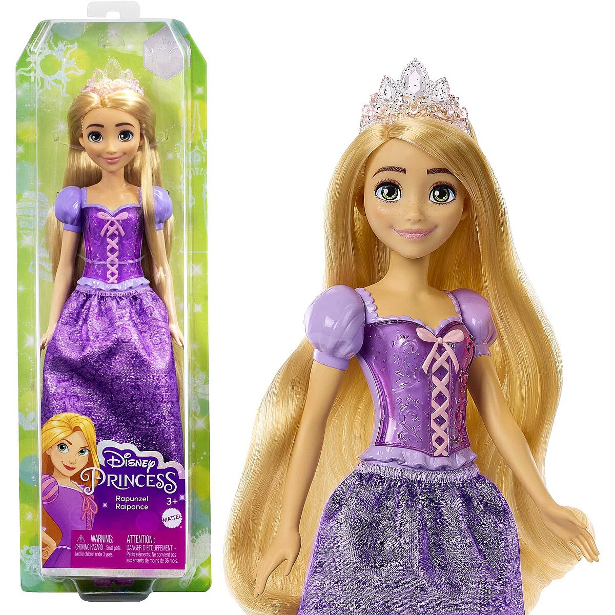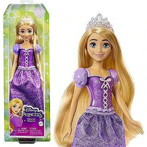 LongDesc - Meet this Disney Princess Rapunzel doll, inspired by the vibrant and creative heroine from the beloved Disney Tangled movie! This posable fashion doll is shown in a sparkling outfit and accessories that include shoes and a tiara. In her signature look inspired by the movie, this Rapunzel doll is ready for any adventure! Doll cannot stand alone. Colours and decorations may vary.