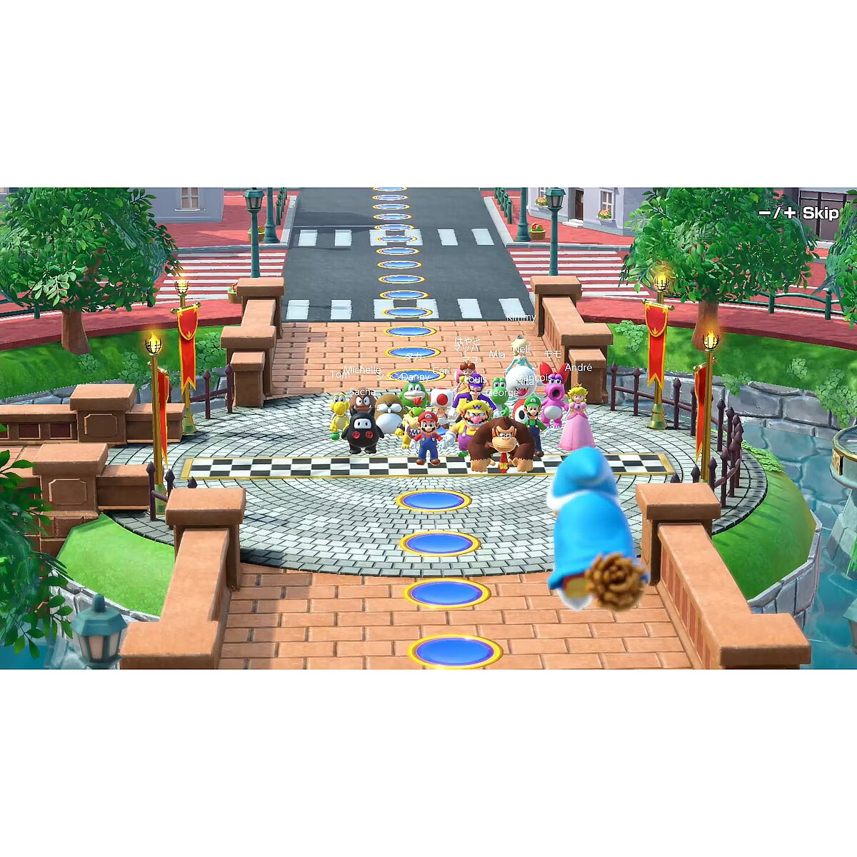 LongDesc - Join the latest Mario Party for a jamboree of seven boards and over 110 minigames!Get ready for the biggest party yet in Super Mario Party Jamboree for Nintendo Switch. From running through merry-go-rounds to motion-control minigolf, this jamboree is jam-packed with over 110 minigames – the most of any Mario Party game to date!With seven boards in all, you can go with the flow in Goomba Lagoon, search for stars in Rainbow Galleria, revisit the classics of Western Land and Mario’s Rainbow Castle from past titles and more.Race across the party board in Koopathlon, a series-first 20-player online competition to see who can rack up the highest scores in minigames like the fast-paced Lane Change. The higher your score in each round, the faster you’ll get to the goal. Koopathlon is just one of a slew of additional modes – there’s something for every kind of Mario Party player to enjoy!