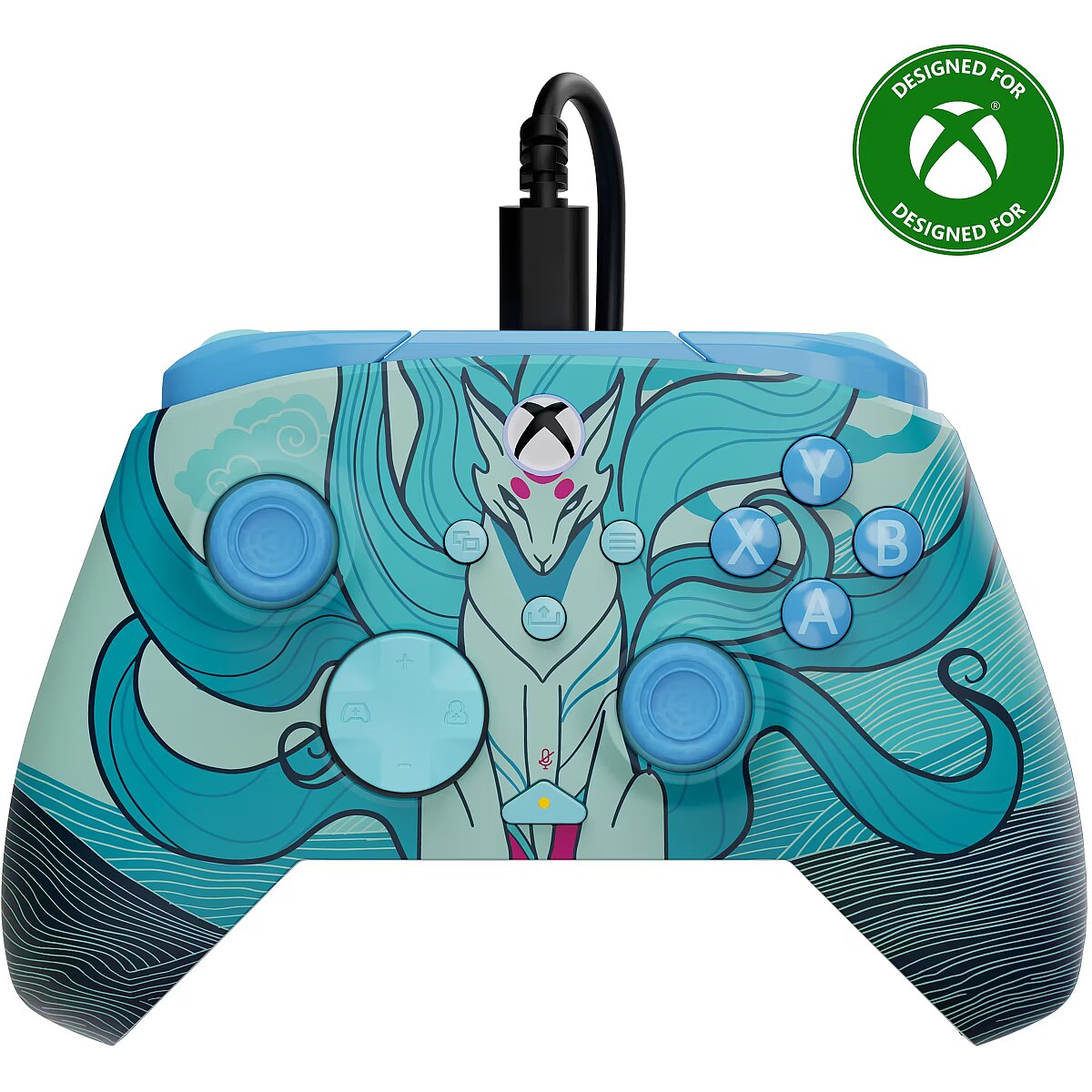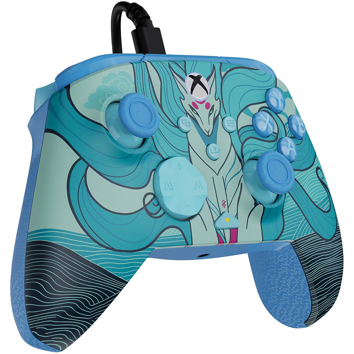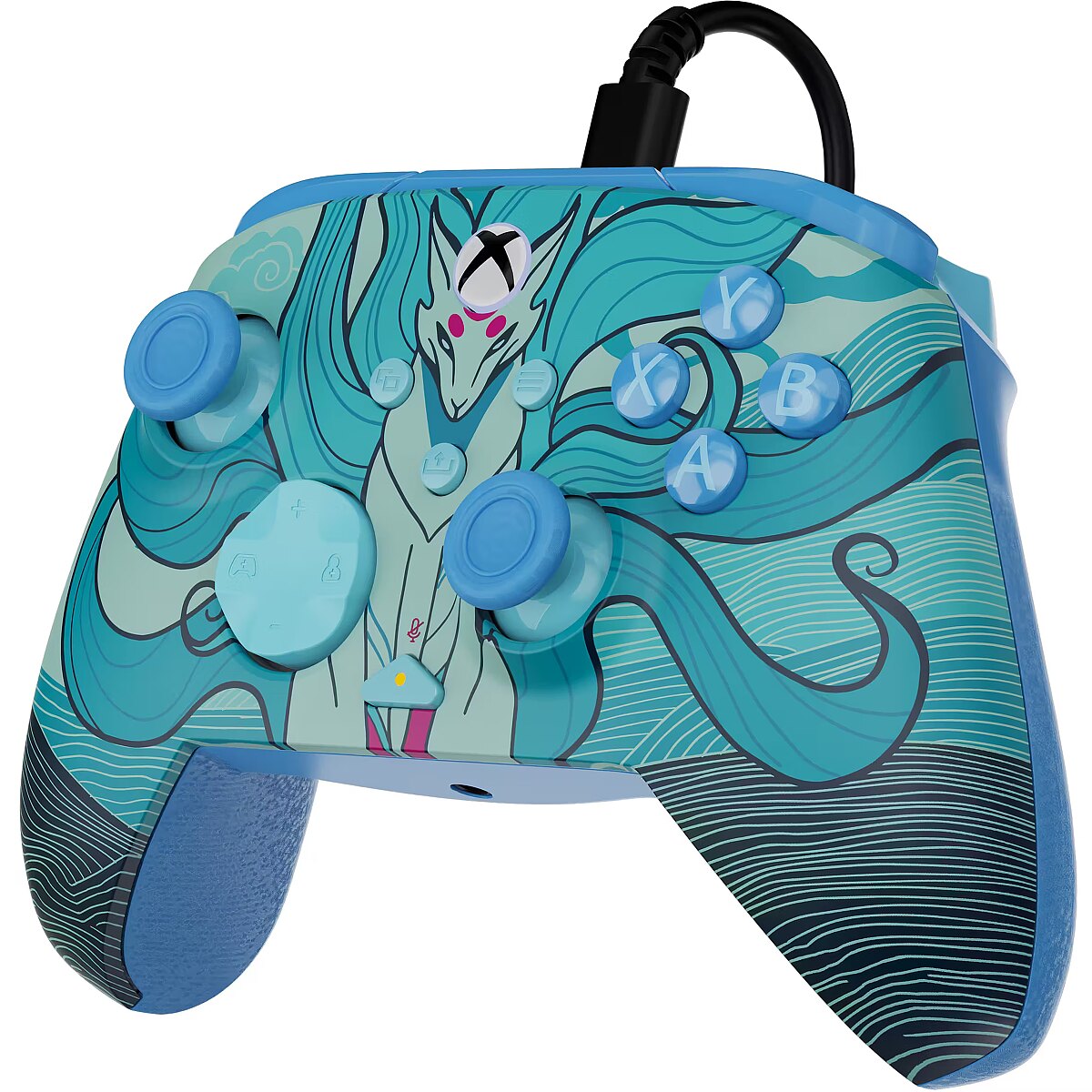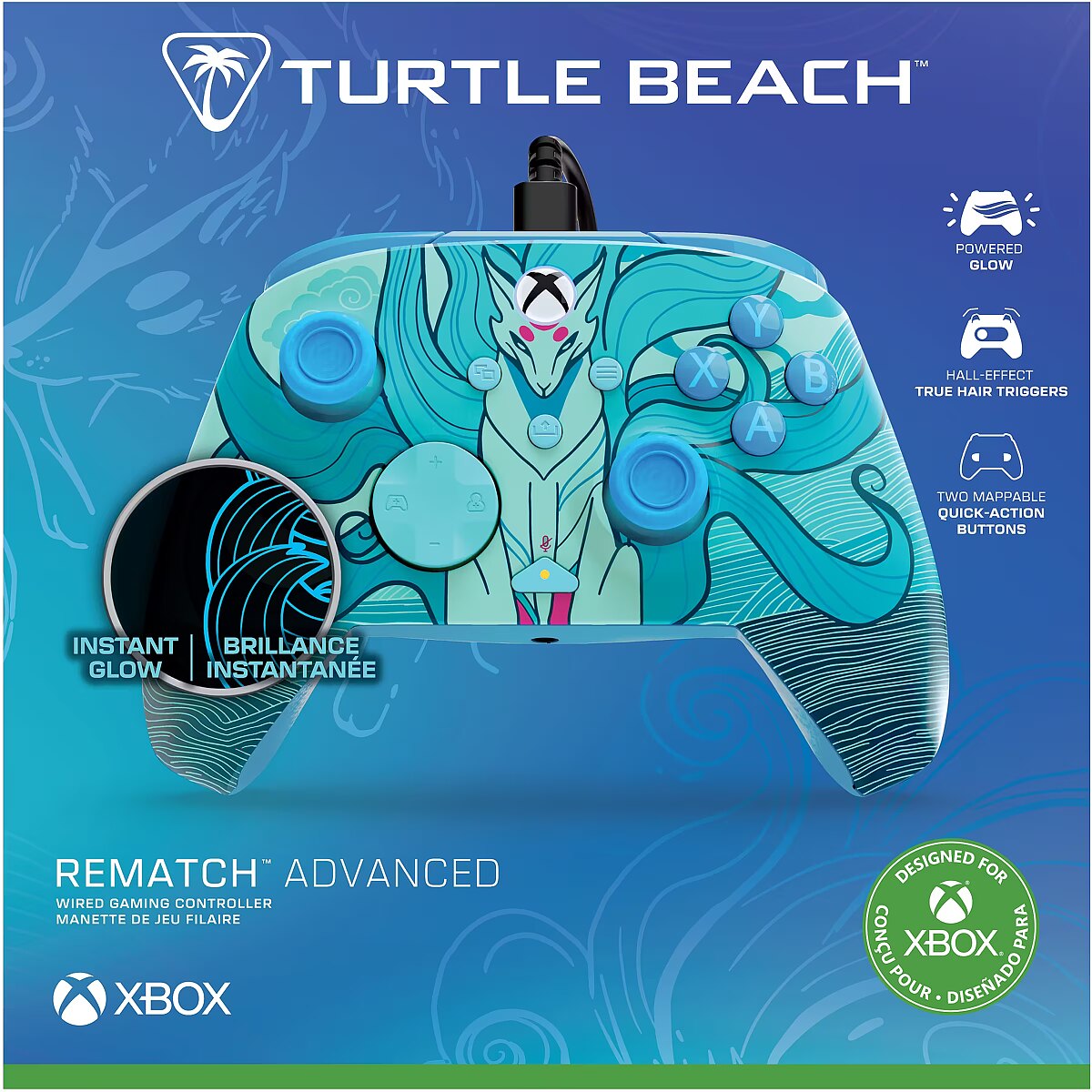 LongDesc - Ready for a rematch? Take your gaming setup to the next level with the Rematch Advanced Wired Gaming Controller for Xbox and PC. The Blue Kitsune controller is inspired by the legendary fox of Japanese Folklore, known for its intelligence, speed, and shape-shifting power. This design features stunning fox imagery in soft blue tones, creating a sense of movement and energy that flows across the surface. It brings a calm yet powerful aesthetic to your setup and turns your controller into a striking expression of style and character. Bringing its bold design to life with a powered glow, this controller lights up instantly when connected to your Xbox or PC. The vibrant blue lighting adds atmosphere to your space, illuminates the design, and keeps the magic alive through late-night sessions.Beyond its sleek design, Rematch Advanced is packed with features that redefine how you play your games. True Hall effect hair triggers with a 2-stop function enhances precision and reaction time, allowing you to fine-tune every movement for maximum control. Equipped with mappable quick-action back buttons, this controller lets you create custom commands, giving you an edge over competition with lightning-fast response times and improved efficiency in high-pressure moments. Immerse yourself in every battle with dual rumble motors and impulse triggers, delivering realistic feedback that pulls you deeper into action. Stay focused on the game and seamlessly adjust your audio settings on-the-fly with patented D-pad audio controls, letting you adjust game/chat mix, master volume, and a dedicated mic mute button. The ergonomic design ensures a natural fit, allowing for extended play sessions without discomfort. Take customization to the next level with the free Control Hub app, allowing you to re-map buttons, fine-tune trigger sensitivity, adjust dead zones, and easily update firmware, creating a gaming experience tailored to your playstyle.Officially licensed by Xbox, this controller delivers the perfect combination of style, precision, and customization to take your gaming to the next level.