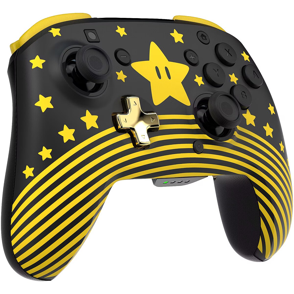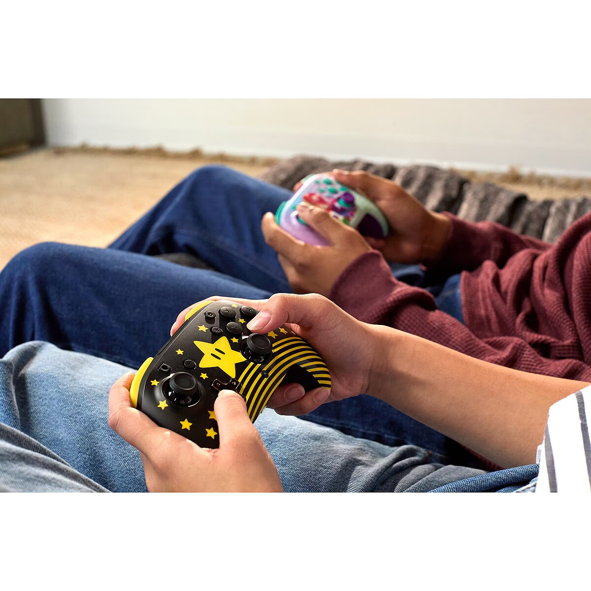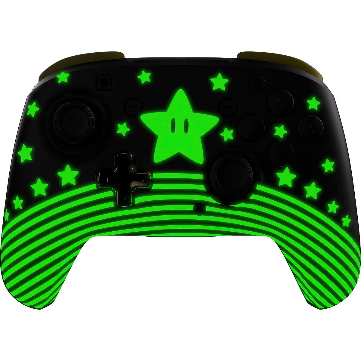 LongDesc - Supercharge your gaming sessions with the Super Mario Star Rematch Wireless Controller on Nintendo Switch, Nintendo Switch Lite, and Nintendo Switch - OLED Model. This controller also works with Nintendo Switch 2 – C Button not available. Brighten up the darkest of gaming rooms with a glow-in-the-dark design after exposure to UV light. For long gaming sessions, you will appreciate the rechargeable battery providing up to 40 hours of play and up to 30-foot wireless range so you can play comfortably from anywhere in the room. Play with natural precision using built-in motion controls in games like Mario Kart 8, and new games like Mario Kart World and Donkey Kong Bananza. With bold style, responsive features, and a glow-in-the-dark design, the officially licensed Rematch Wireless Controller for Nintendo is ready for your next adventure.