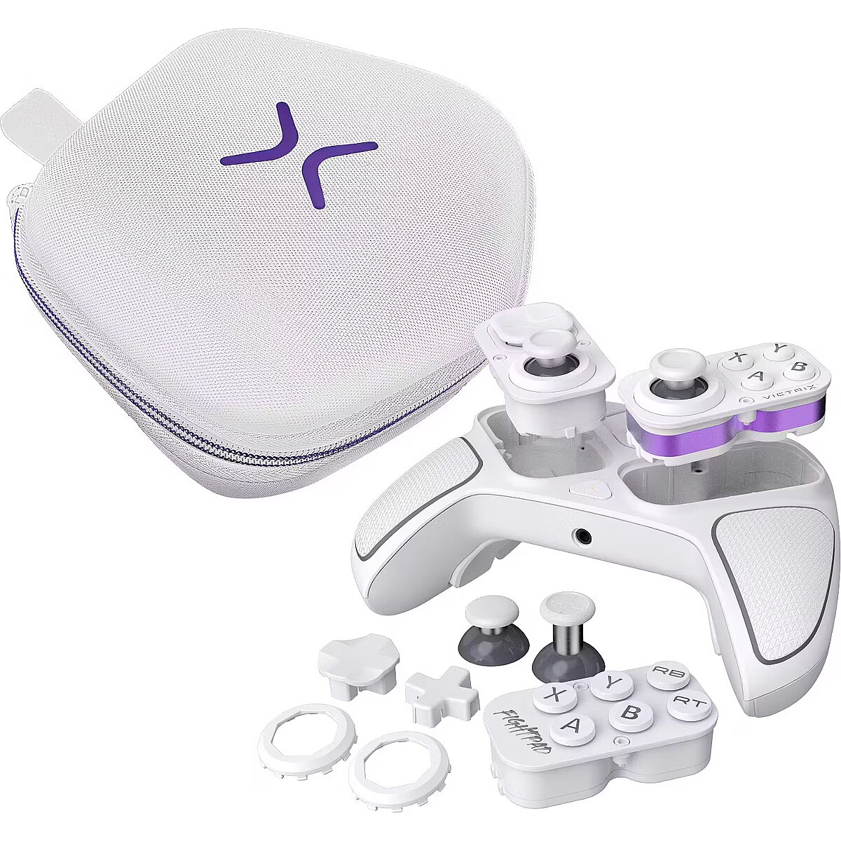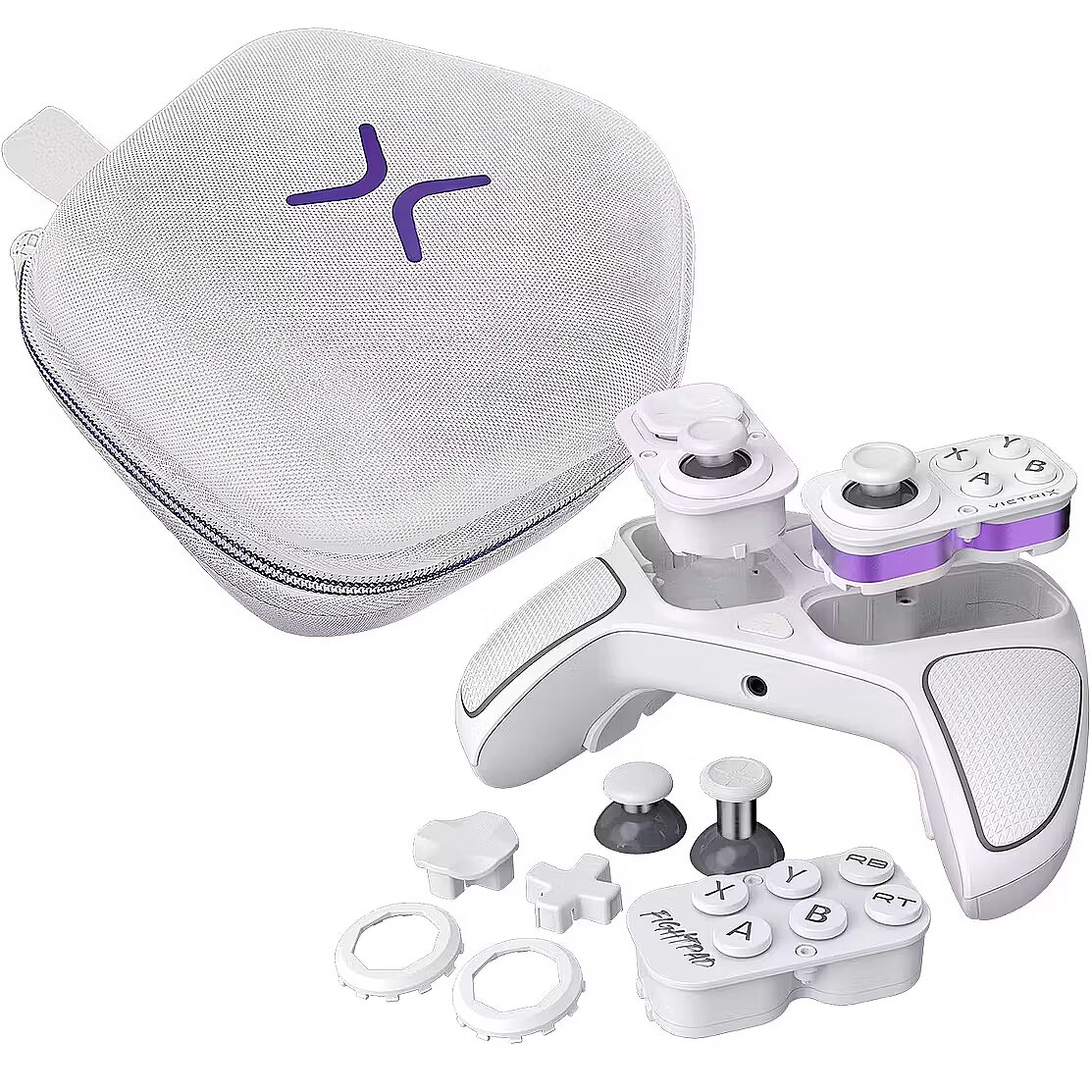 Tailor your controller to your unique playstyle with the free Victrix Control Hub app on PC. Remap buttons, adjust deadzones and EQ settings, optimize triggers, run diagnostics, update firmware, and unlock a range of other customization options to enhance your gaming Kit includes: Victrix Pro BFG Reloaded USB Wireless Transmitter Detachable 3m Braided USB-C Cable 6-button Fightpad Module with Khailh Microswitches Reversible D-Pad and Thumbstick Left Module with Hall-Effect Technology Swappable Button & Thumbstick Right Module with Hall-Effect Technology Interchangeable D-Pads, Thumbsticks, and Gates Module Customization Tool Carrying Case