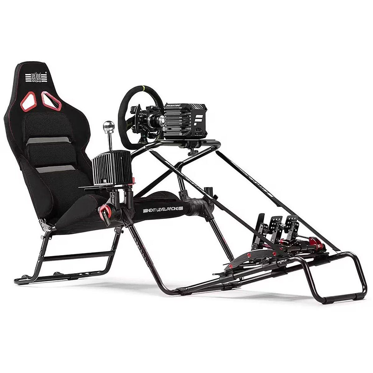 Other features > Special features - Introducing the Next Level Racing® GTLite Pro, a fantastic foldable racing cockpit ideal for sim racers with limited space. Not only is it designed for comfort, but it also provides a genuine racing experience without being overly expensive. Additionally, it’s durable enough for beginner direct-drive steering wheels up to 13NM. Furthermore, its lightweight design allows for easy folding, making it simple to move and store with its built-in wheels. Also, the cockpit’s robustness, paired with its attractive appearance, makes it perfect for intense racing. Moreover, for added comfort, the seat is extra padded in key areas like your lower back, thighs, and shoulders, emulating the design of real GT racing seats. Lastly, the GTLite Pro is uniquely fits with both a gear shifter and a handbrake simultaneously, offering a complete and affordable racing setup.