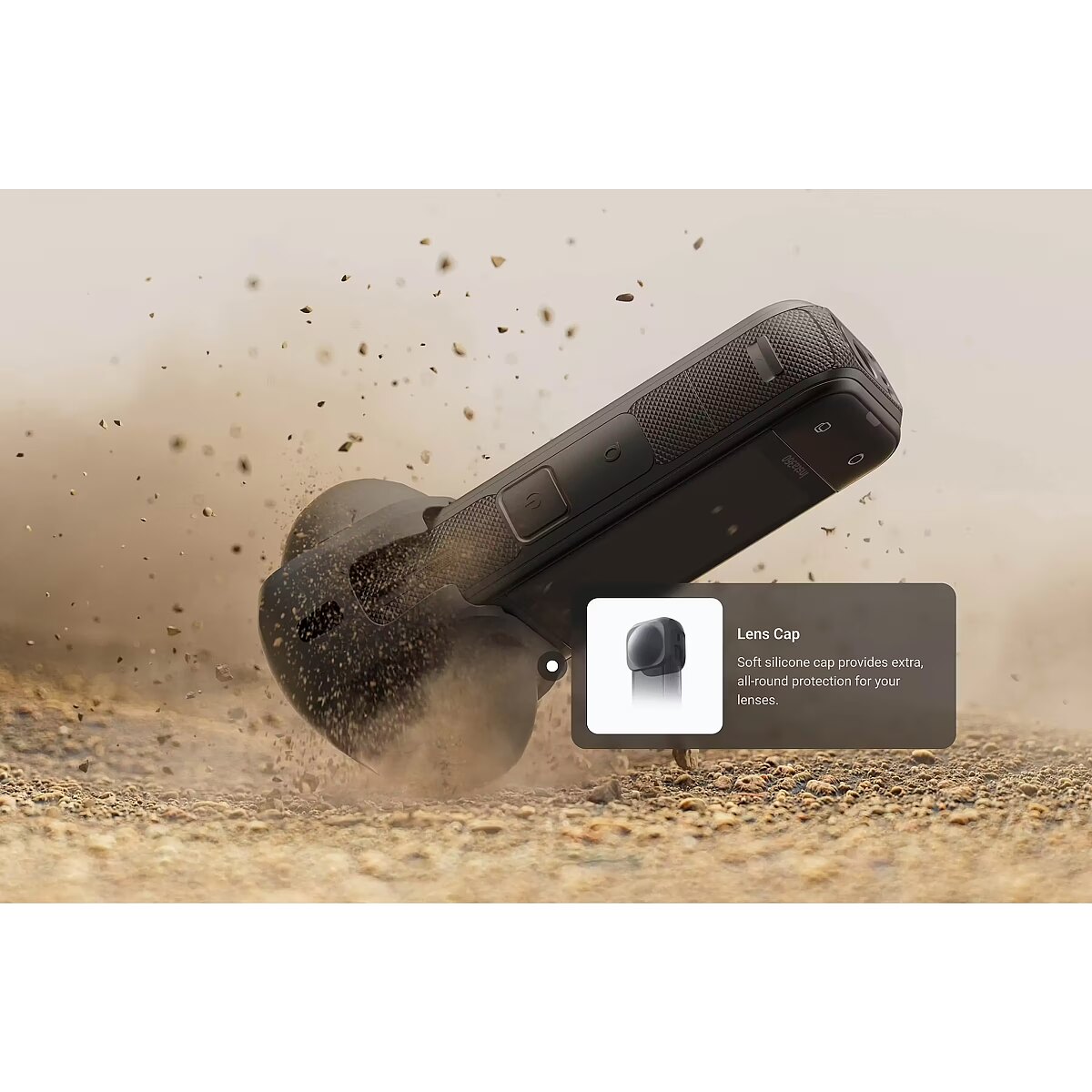 Two shots in one. Instant flat video: Choose between a Selfie and Fixed View and record a perfectly framed, ready-to-share flat video, no editing needed. Full 360 vide: The best part? You'll capture a full 360 video at the same time, ready for you to explore and find unexpected moments. Ready for anything Replaceable lenses