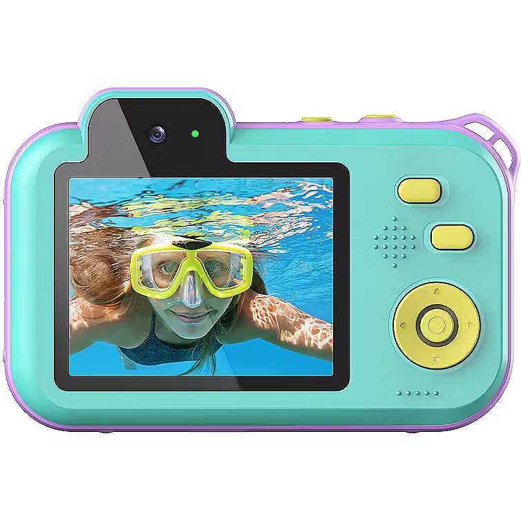 description_short_en - Digital camera for kids Up to 12 MP photos 2.7K 2688 × 1520 video recording 2.8" LCD screen, 8 filters and 3 games Waterproof up to 3 m