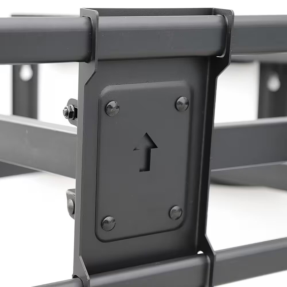 Description - LCD/LED TV mount 50-120" 150kg designed for mounting large-sized TVs has a lock to prevent the TV from sliding off additional tilt adjustment +-4degrees distance from the wall 900-9350mm maximum spacing of holes for the handle 900x600 vertical adjustment (tilt) -5 to 7 degrees horizontal adjustment (rotation) -45 to 45 degrees