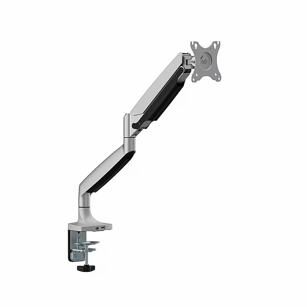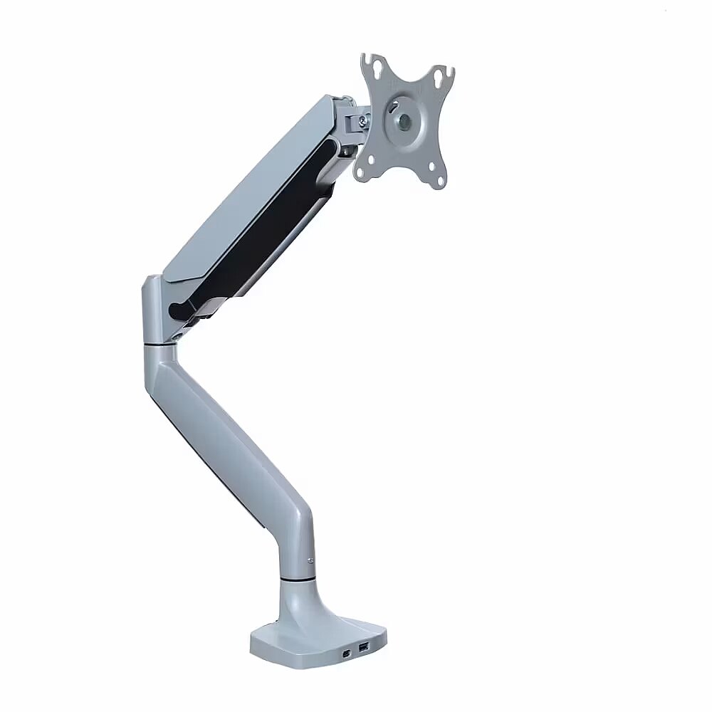 Description - Gas desk holder for 1 LED/LCD monitor 17-45" ART: Application: Holder designed for heavier and larger Curved monitors Vertical adjustment (tilt): -15 to 15 degrees Horizontal adjustment (rotation): -90 to 90 degrees Cable concealment system: YES Lock to prevent the TV from sliding off: YES The tool-free TILT system allows you to rotate the screen from landscape to portrait USB-A 3.0 & USB-C ports built into the base