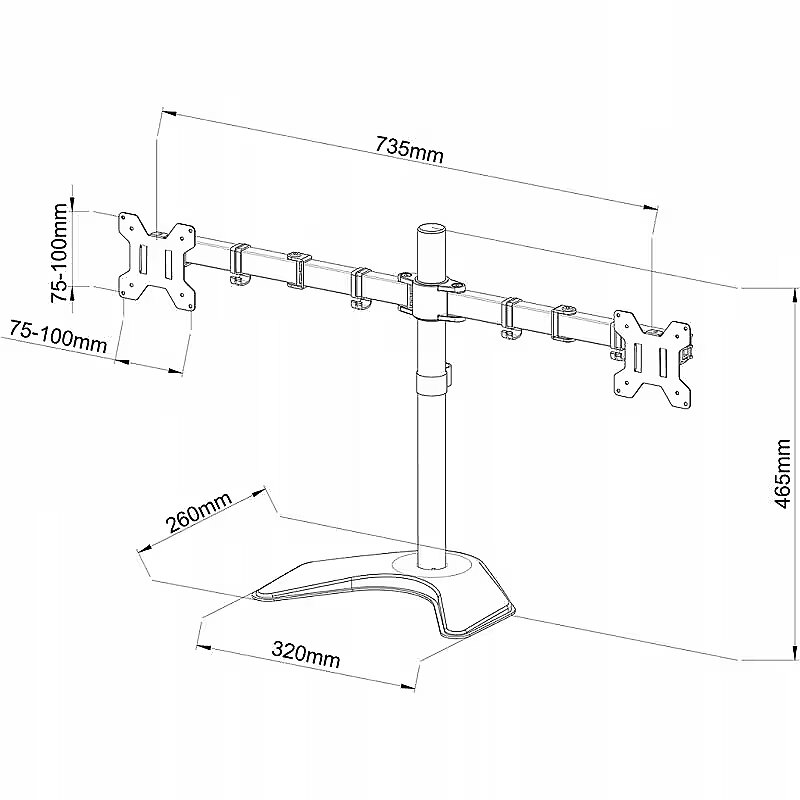 Other features - Wide range of adjustment - will adjust to virtually any monitor position through triple flexing handle arms Adjustable height monitors Monitor can be zainstalownay both vertically and horizontally (optional PIVOT) System wiring will ensure law and order Heavy plate guarantees stability and security The handle can stand alone or be bolted to the top (this requires drilling a hole in the countertop)