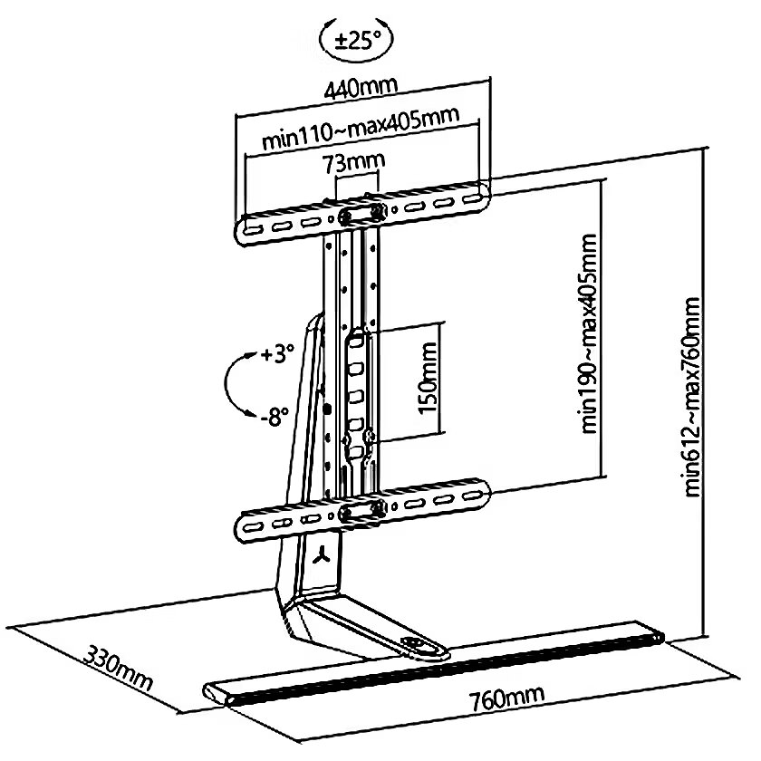 Other features - Maximum load: up to 40 kg Tilt adjustment from +3° to -8° Swivel adjustment 25° Minimum/maximum horizontal spacing: 200/400 mm Minimum/maximum vertical distance: 200/400 mm Handle height adjustment from 61.2 to 76 cm Robust, durable construction RGB LED backlighting with on/off switch High quality workmanship VESA standard: 200x200, 300x200, 300x300, 400x200, 400x300, 400x400 Designed for monitors 32" - 55" (or larger, if their weight does not exceed 40 kg and VESA standard is compatible with the bracket)